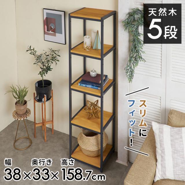 オープンラック スリム 幅38cm 5段 W 38 × D 33× H 158cm 無垢 木製 ウッド アイアン Hus ヒュース 84109