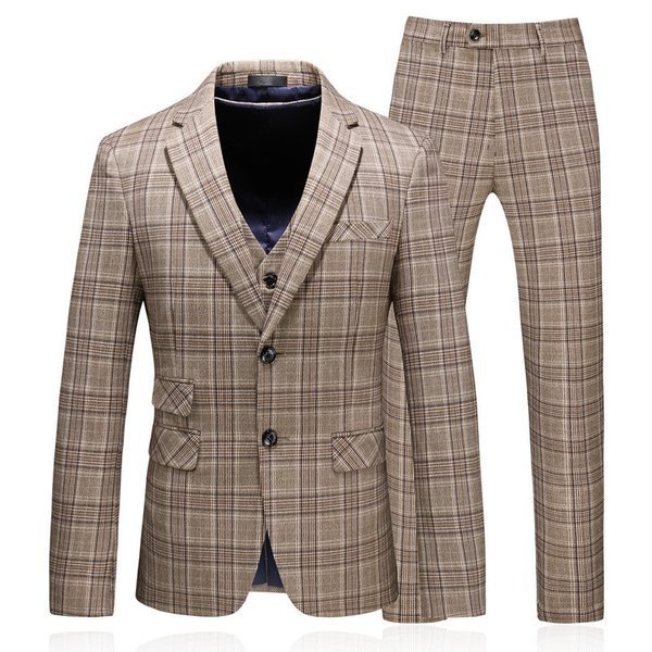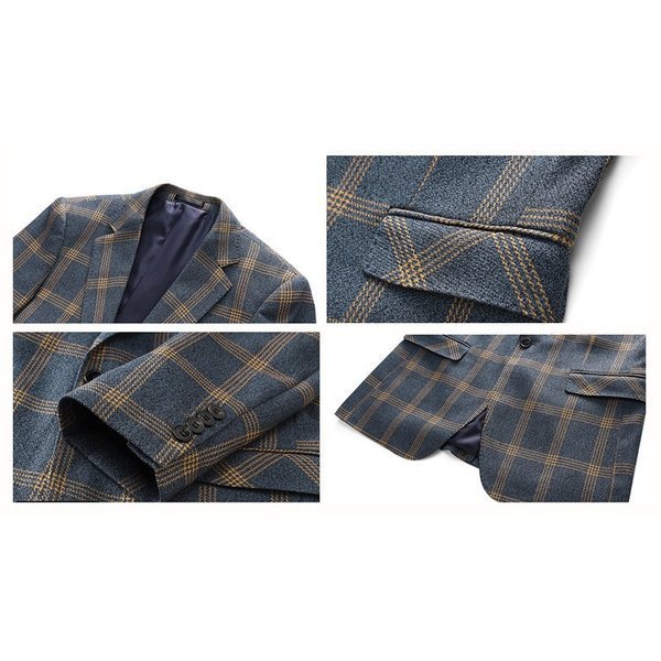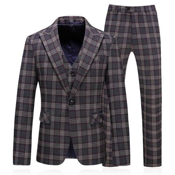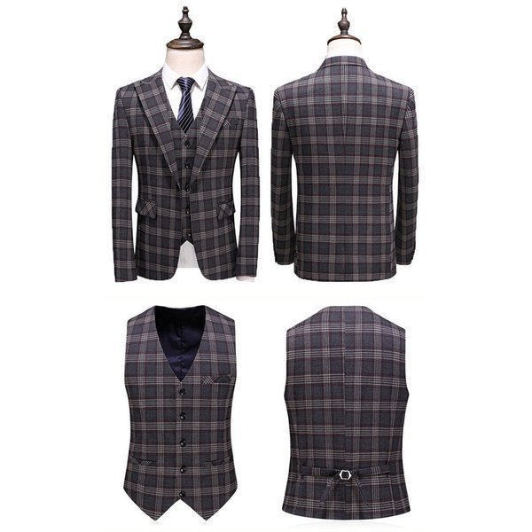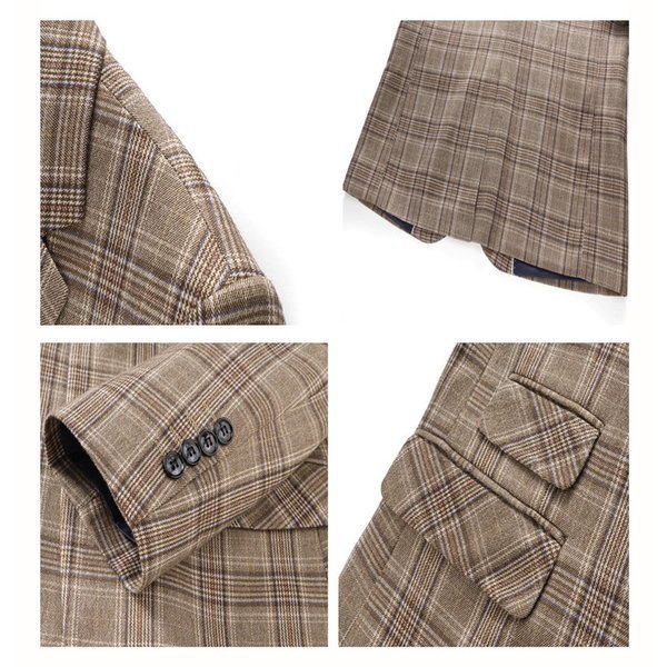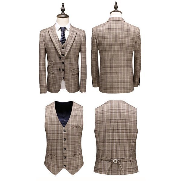 メンズスーツ 3ピーススーツ ビジネススーツ チェック柄 1つボタン メンズ スリムスーツ 男性用 紳士服 大きい セットアップ ファッション 高品質 結婚式