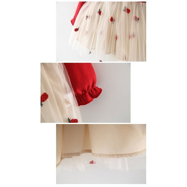子供 ワンピース フォーマル パイナップル柄 韓国子供服 子供服 ベビー服 女の子 可愛い レッド イエロー 上品 ベーシック 秋 春 冬 70cn/80cm/90cm/100cm