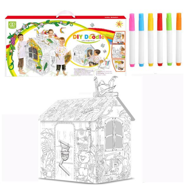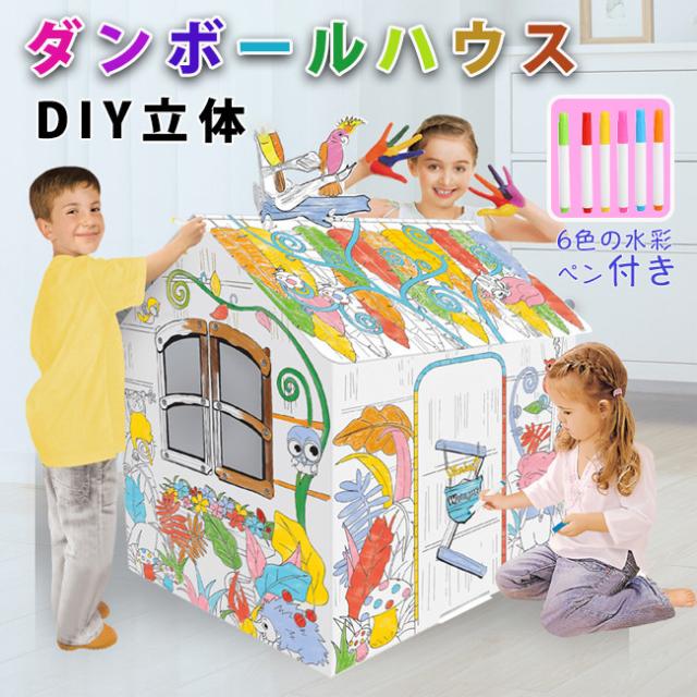 ダンボールハウス 白 段ボールハウス ダンボール 絵書き おもちゃ 子供用 キッズ 子供用テント 組み立て式 こども 誕生日プレゼント 男の子 女の子 3歳 収納簡単