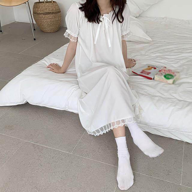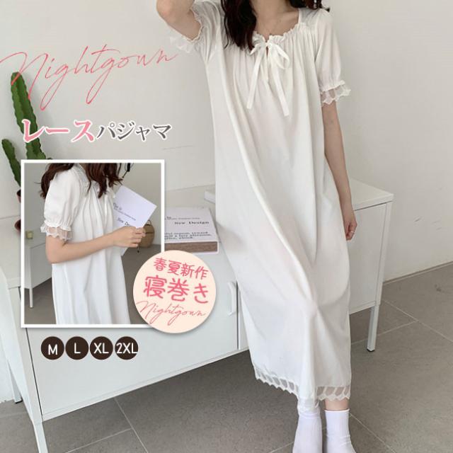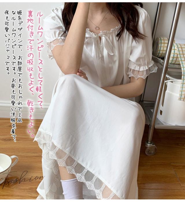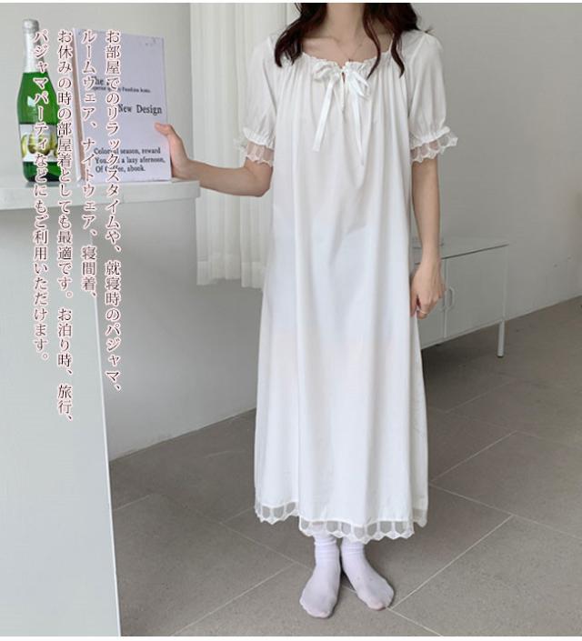 ネグリジェ パジャマ ルームウェア ワンピース半袖 ロング レディース 寝巻き 部屋着 体型カバー可愛い