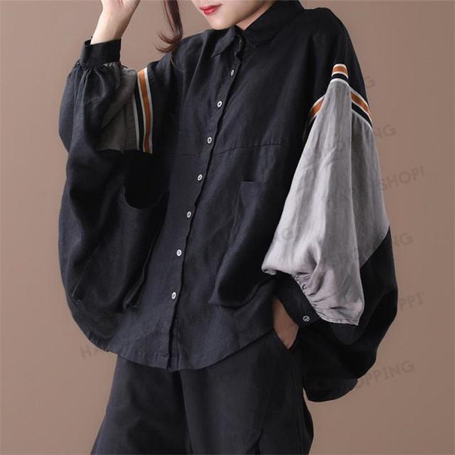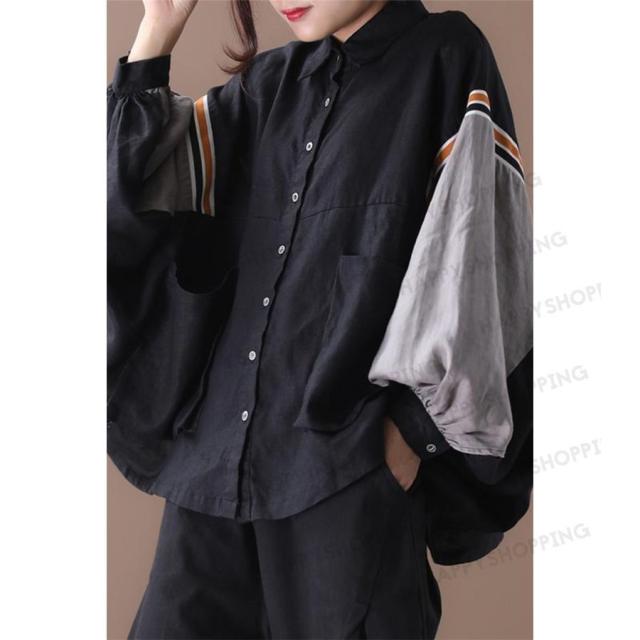 シャツ ブラウス バットウィング スリーブ トップス 前開き レディース 無地 ゆったり シンプル デニムやレギンスと相性抜群