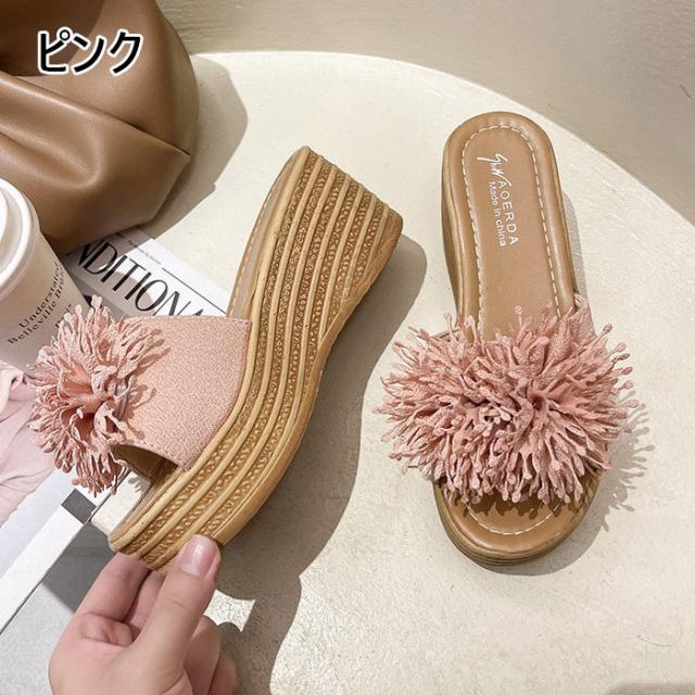 ウェッジソールサンダル サンダル レディース 夏サンダル ウェッジソール 厚底靴 履きやすい ノーストラップ 歩きやすい オシャレ美脚 楽ちん スリッパ 婦人靴