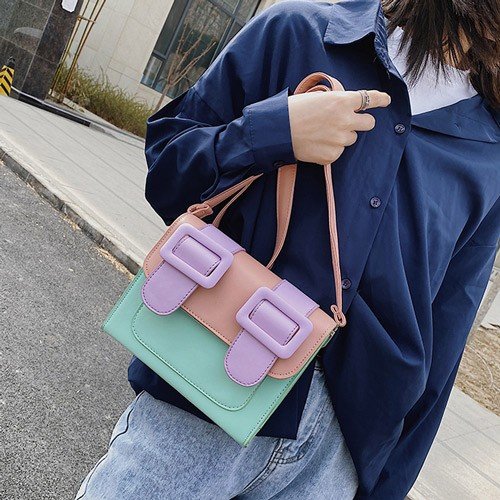 ショルダーバッグ レディース 斜めがけ 小さい パステル バイカラー ブラウン ホワイト グリーン ブラック