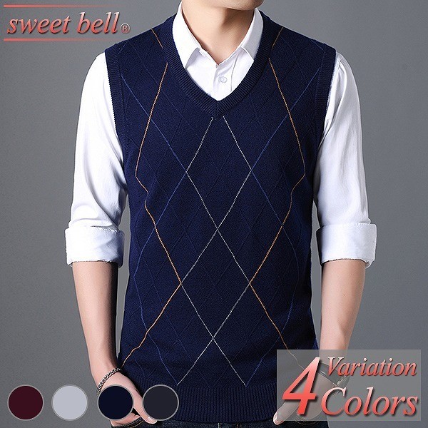 ニットベスト メンズ ベスト ニット 大きいサイズ ジレ カジュアル ビジネス スクール Vネック 丸首 おしゃれ