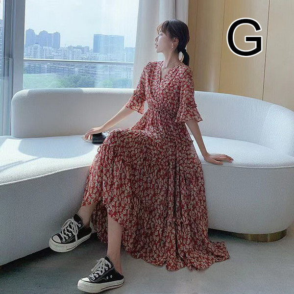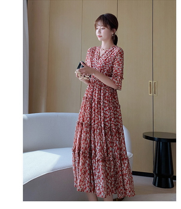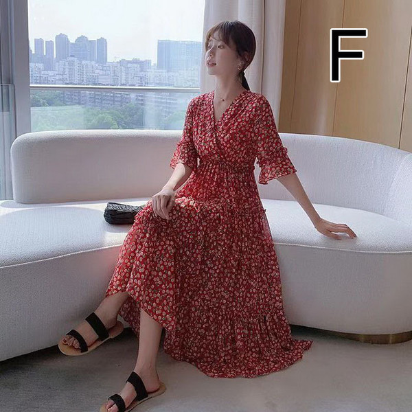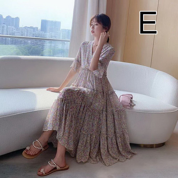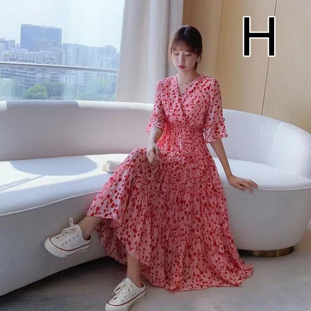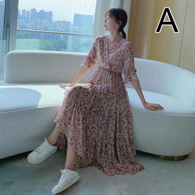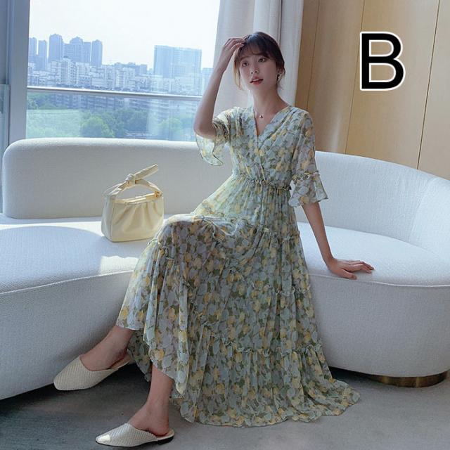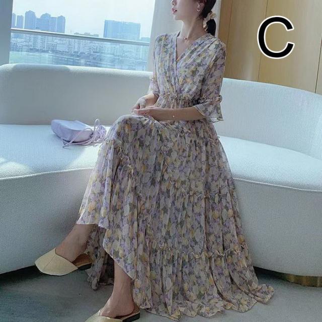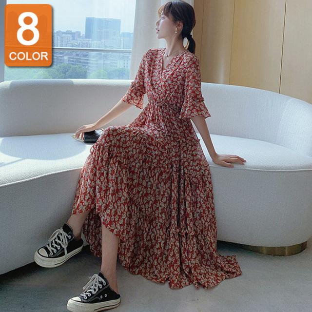 ワンピース レディース 40代 夏 キレイめ マキシ丈ワンピース 半袖 シフォンワンピ Vネック ロング丈 花柄フレアスカート ゆったり 上品 オシャレ通勤 着痩せ