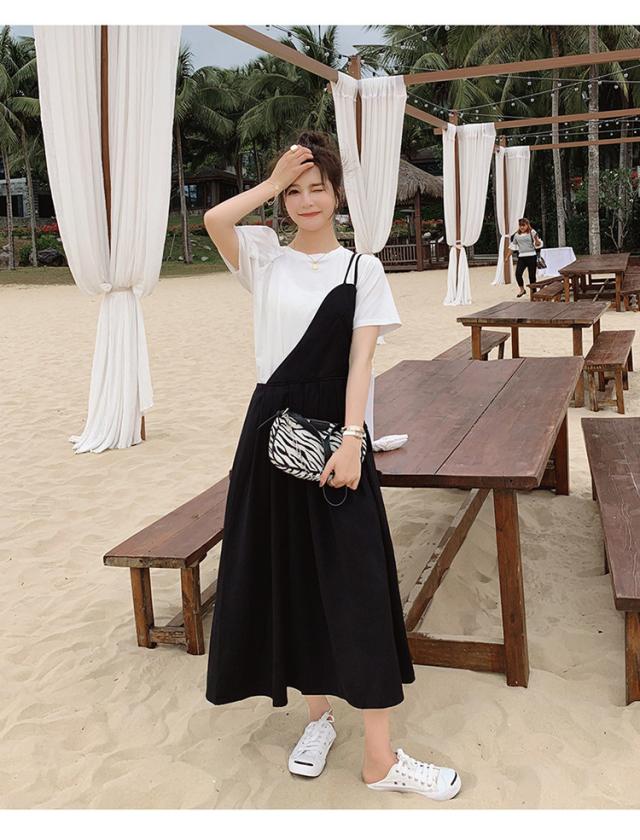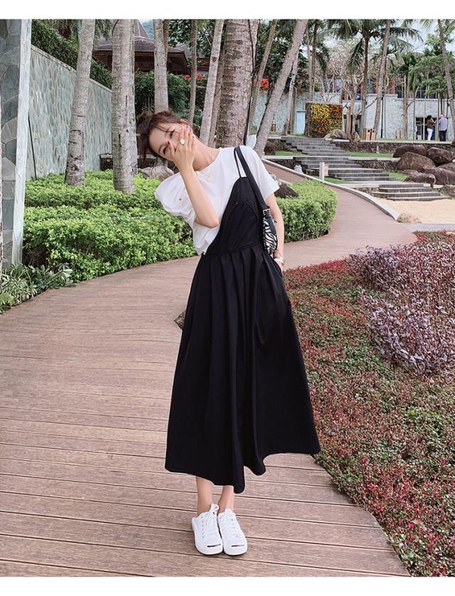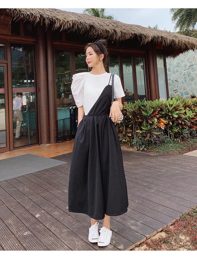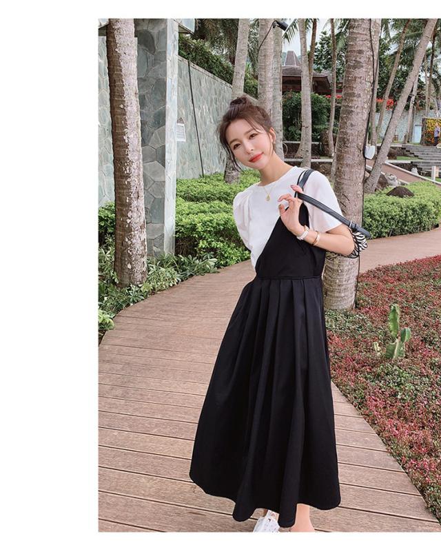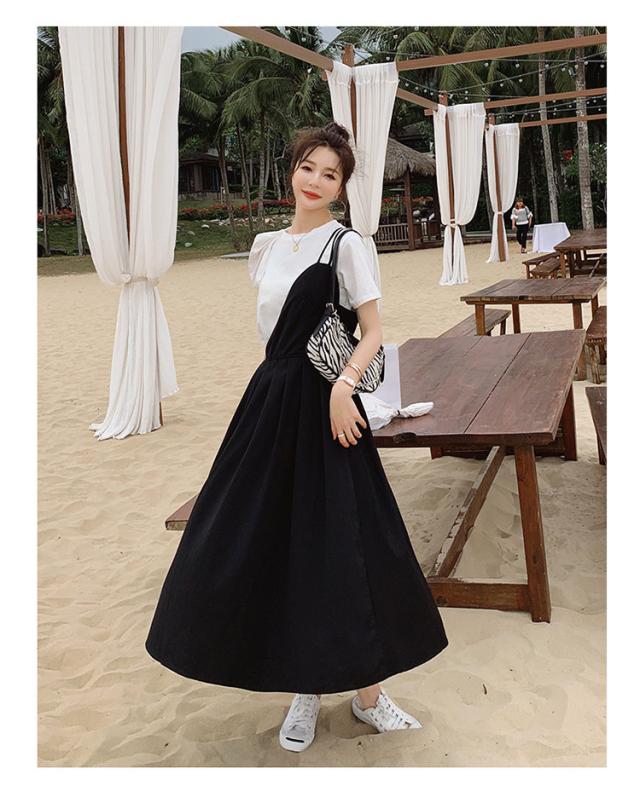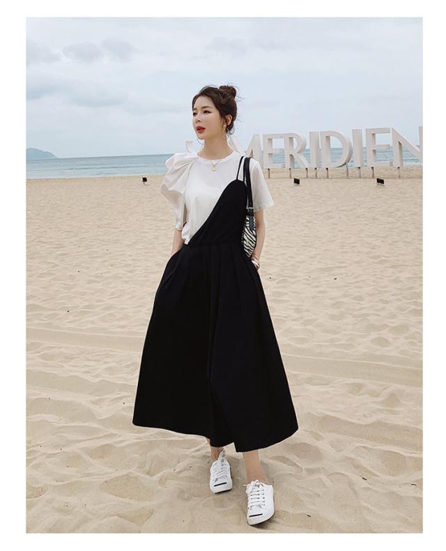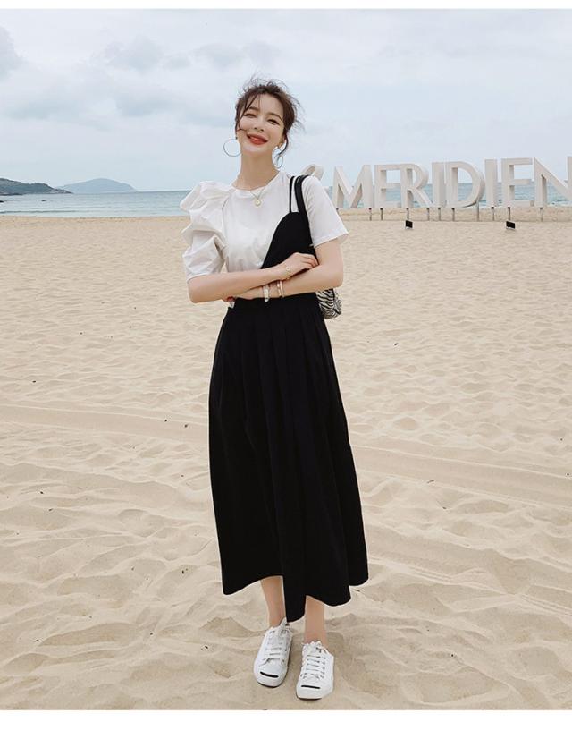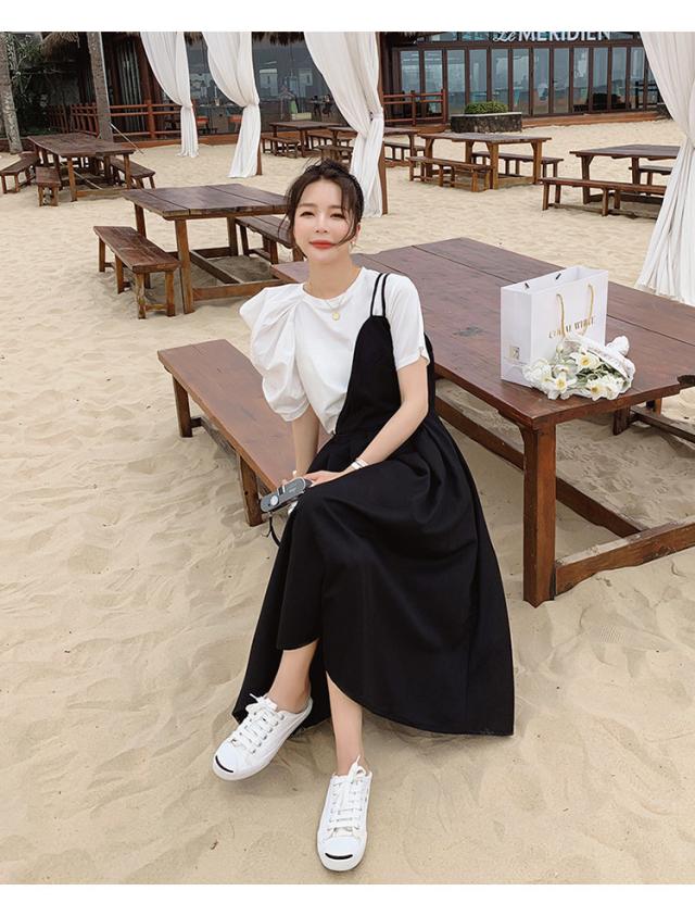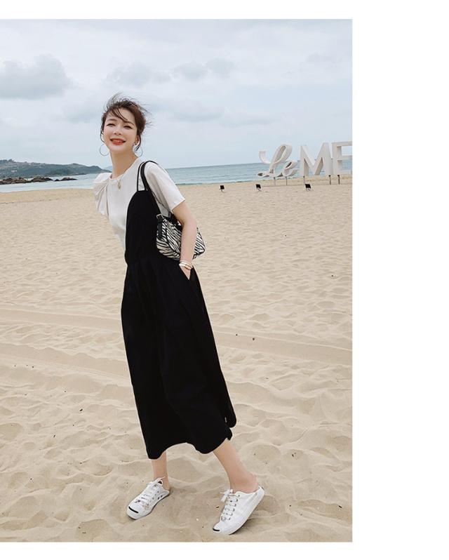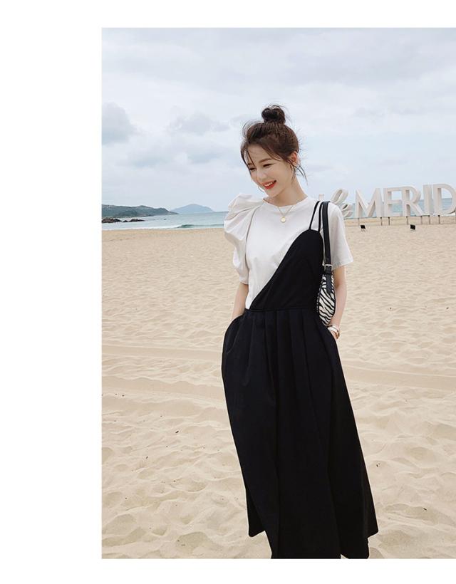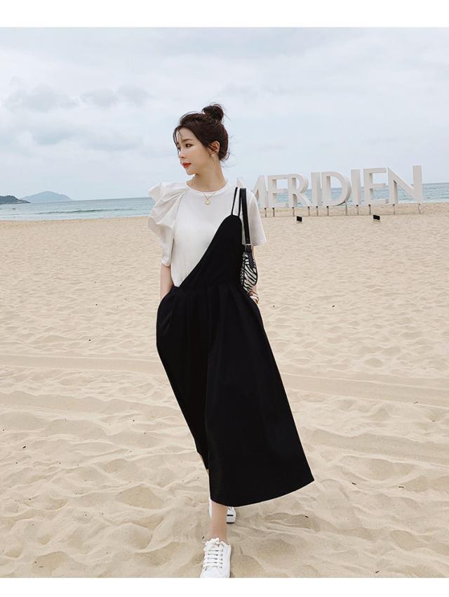 ワンピース2点セット レディース 40代 マキシワンピース 春夏新作 半袖Tシャツ キャミワンピース 黒 プリーツスカートオシャレセットアップ 大人 ゆったり