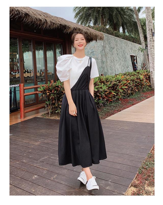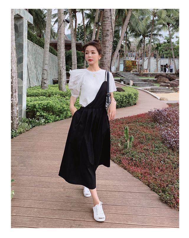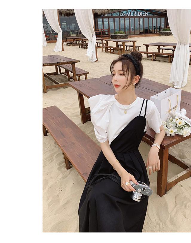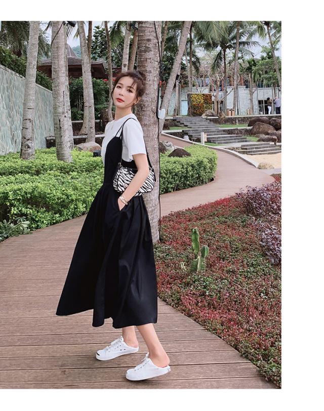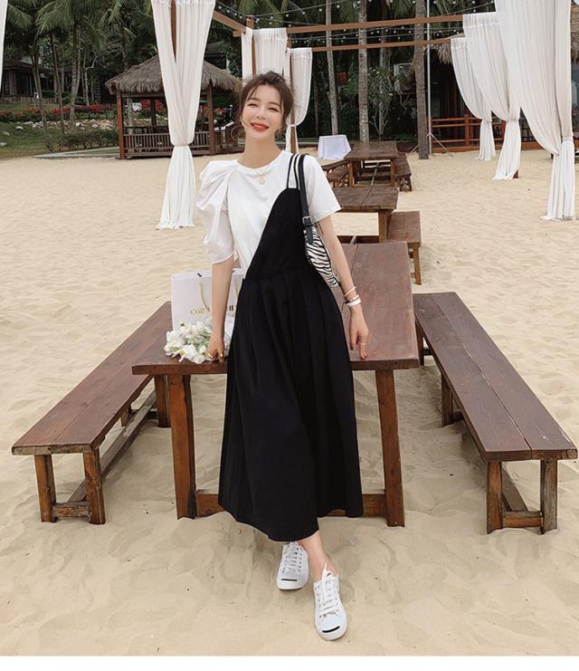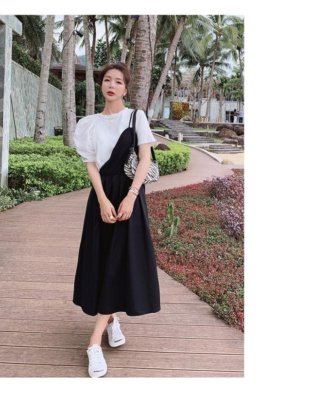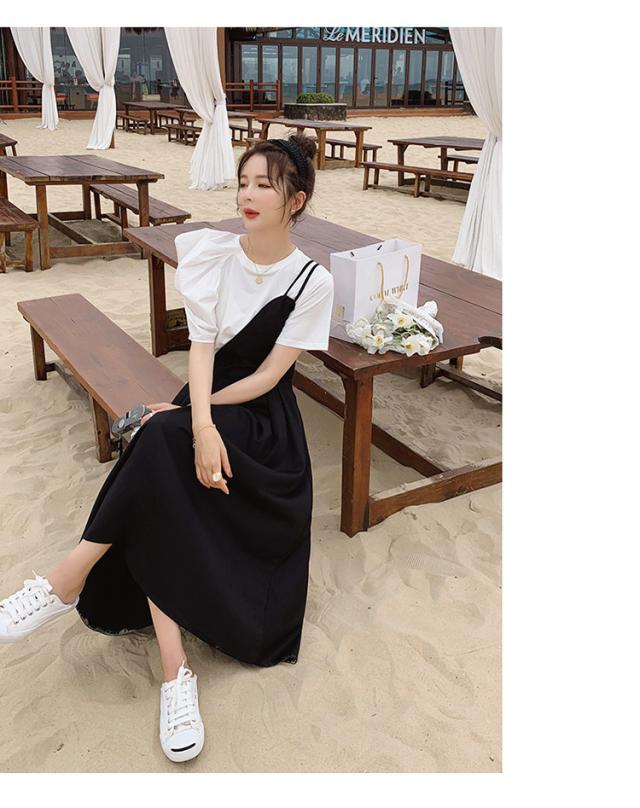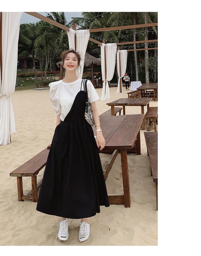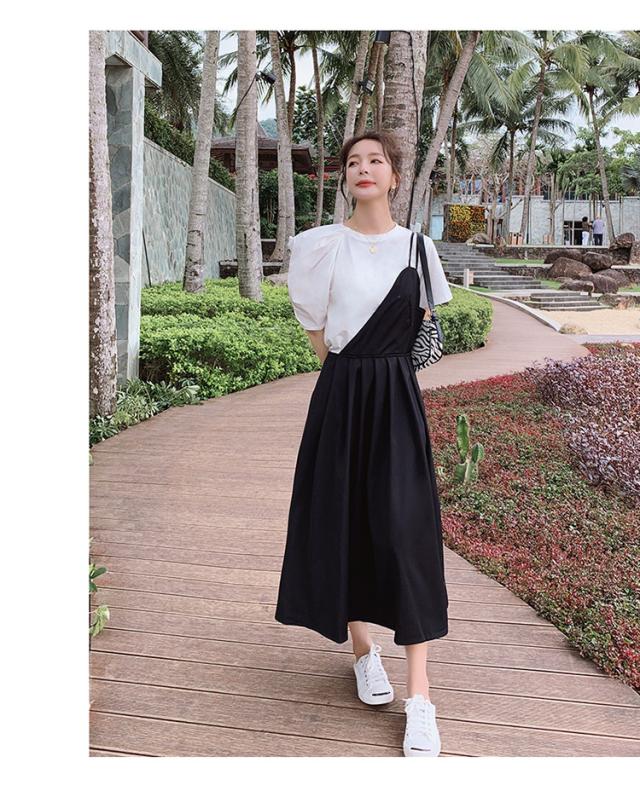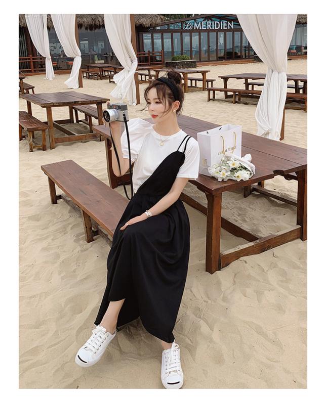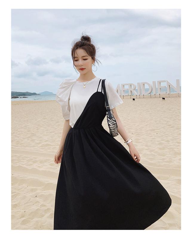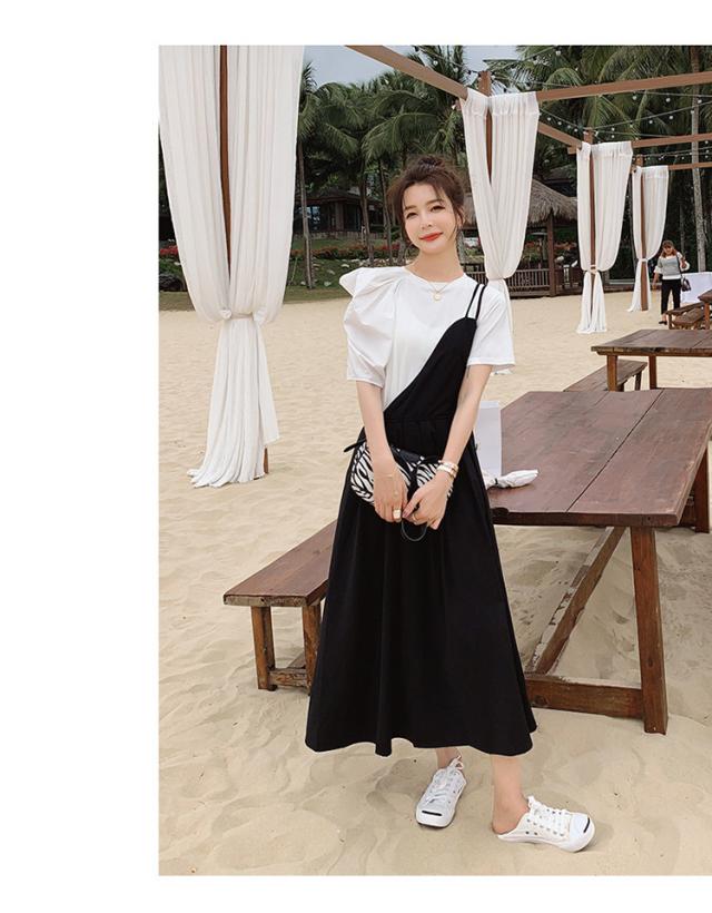 ワンピース2点セット レディース 40代 マキシワンピース 春夏新作 半袖Tシャツ キャミワンピース 黒 プリーツスカートオシャレセットアップ 大人 ゆったり