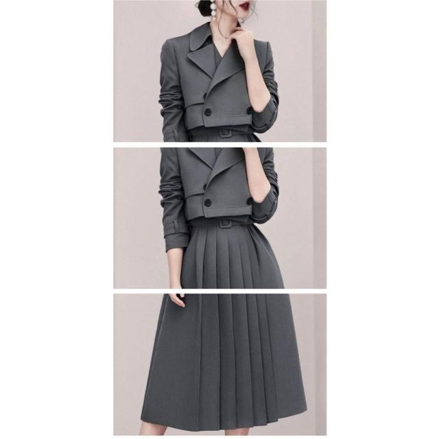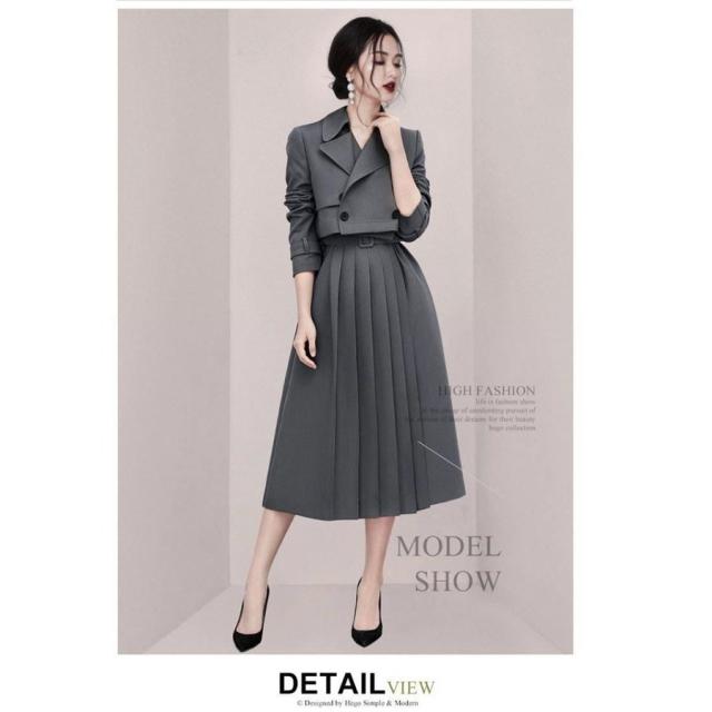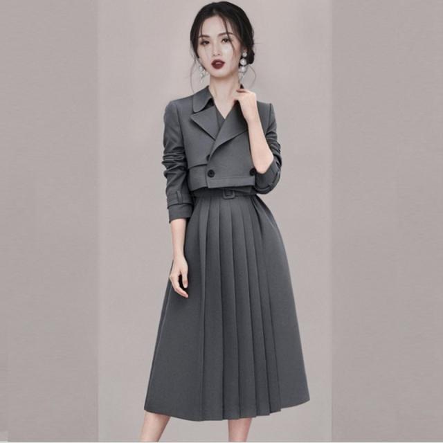 ディース ブレザー ワンピーススーツ 面接 通勤 OL クルーネック 2点セット ファッション フォーマル