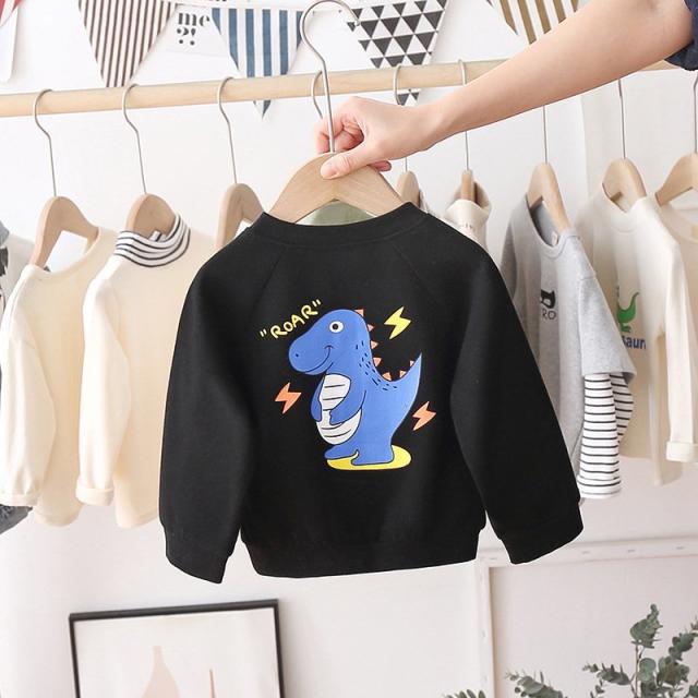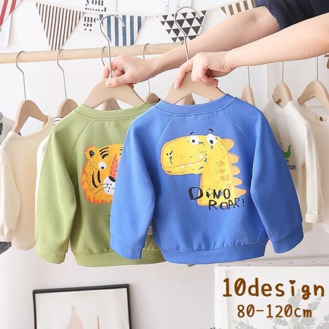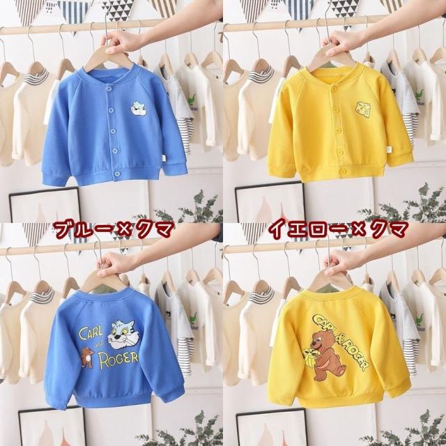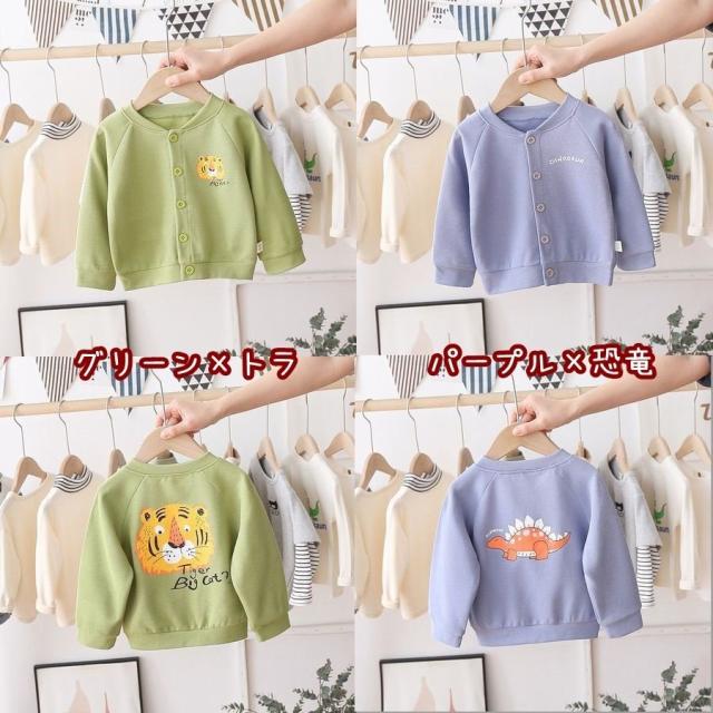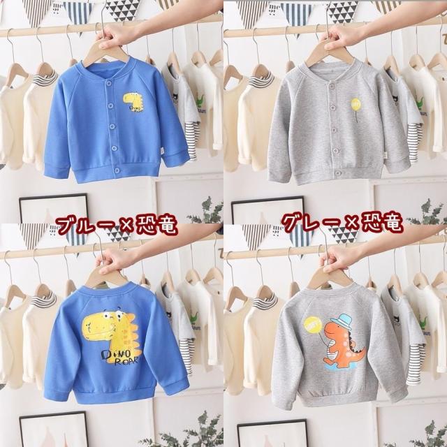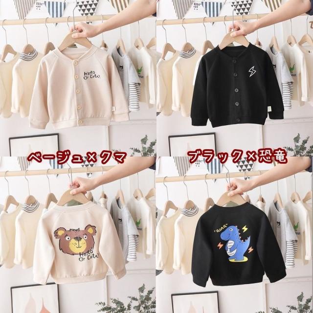 カーディガン キッズ 長袖 前開き 丸首 ラウンドネック イラスト プリント 子供用 男の子 女の子 トップス 恐竜 クマ かわいい おしゃれ お出か