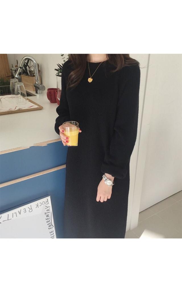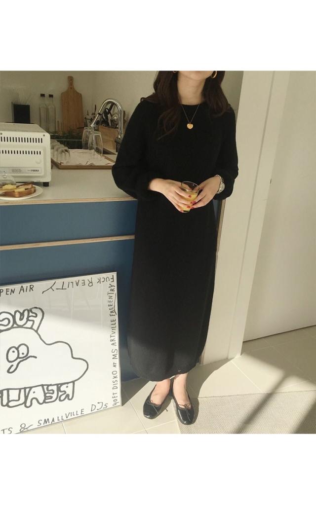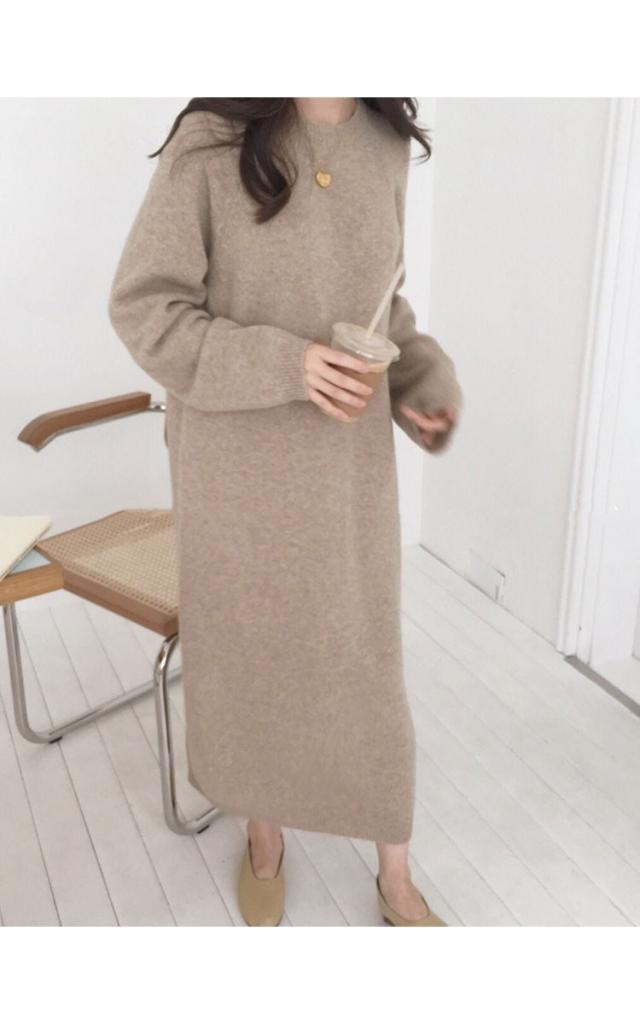 レディース ニットワンピース ドレス メリヤス マキシ丈 長袖 秋冬 ワンピース 無地 韓国風 着痩せ 上品 通勤 30代40代 新作