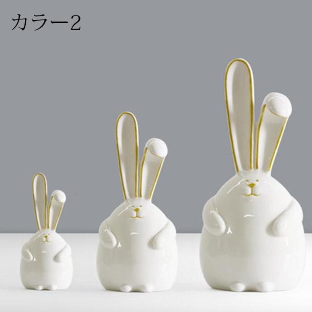 うさぎの置物 ウサギ 動物 オーナメント 北欧風 かわいい 卓上置物 おしゃれ インテリア 装飾 お洒落 事務室 居間 置き物 雑貨 装飾品 小物 癒し プレゼント 3色
