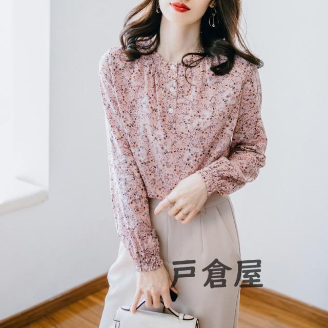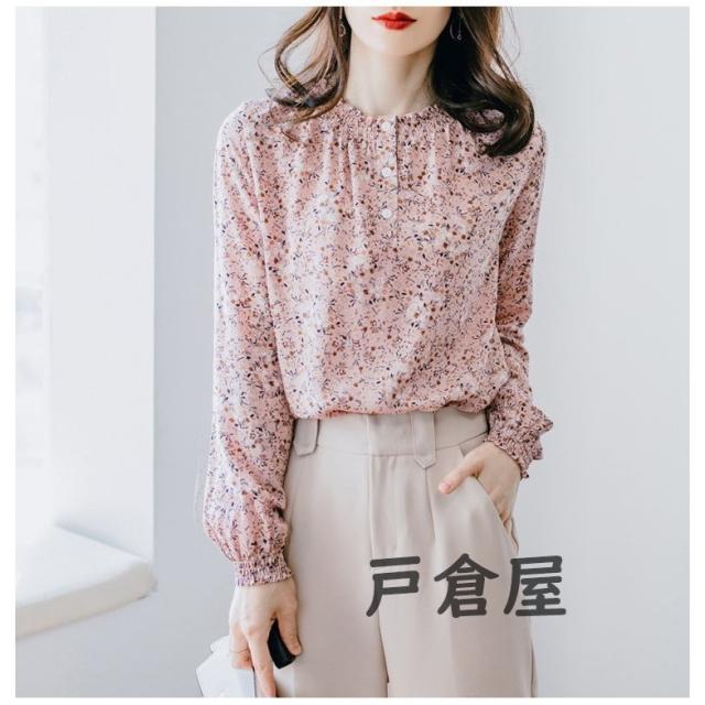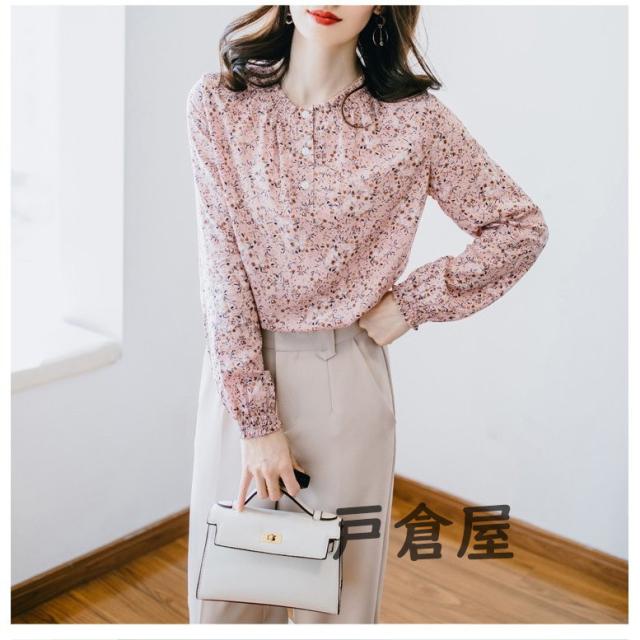 ブラウス レディース 2021 春夏秋新作 オシャレシフォンブラウス 花柄シャツ フレア 長袖トップス 大人 通勤OL ゆったり シャツ30代 50代