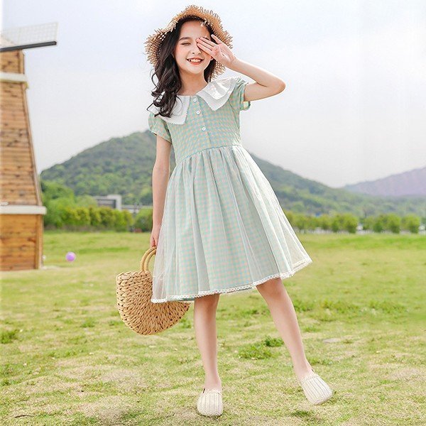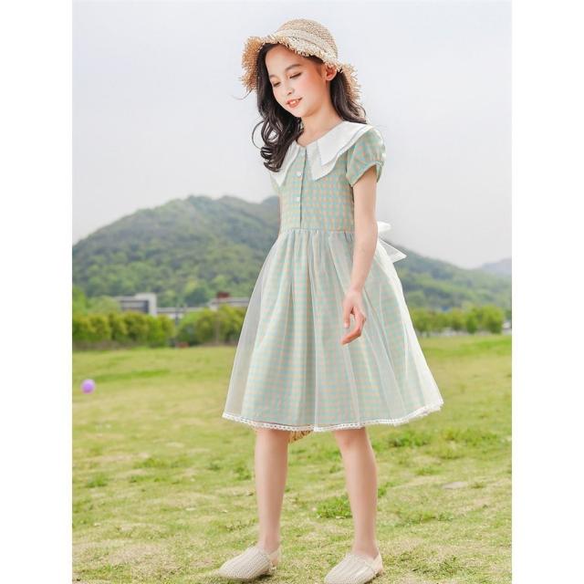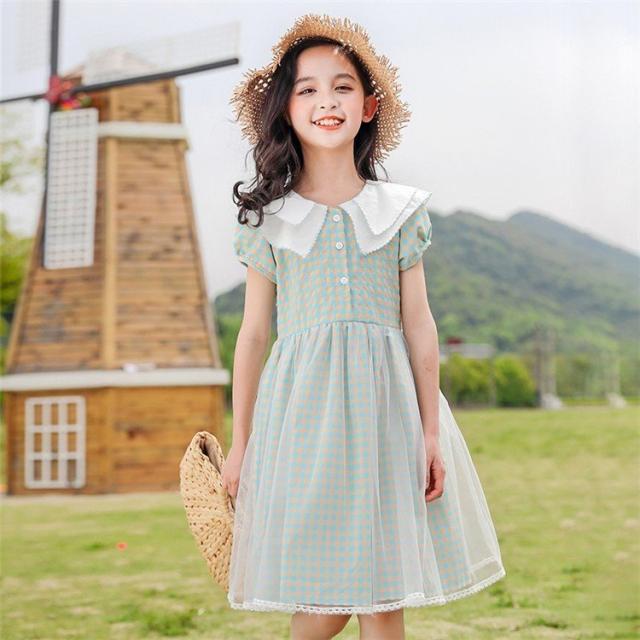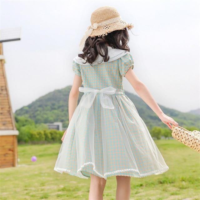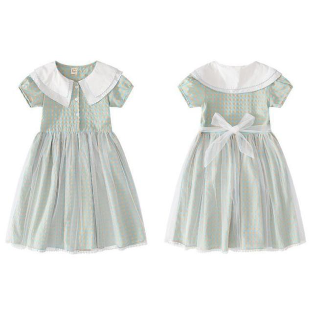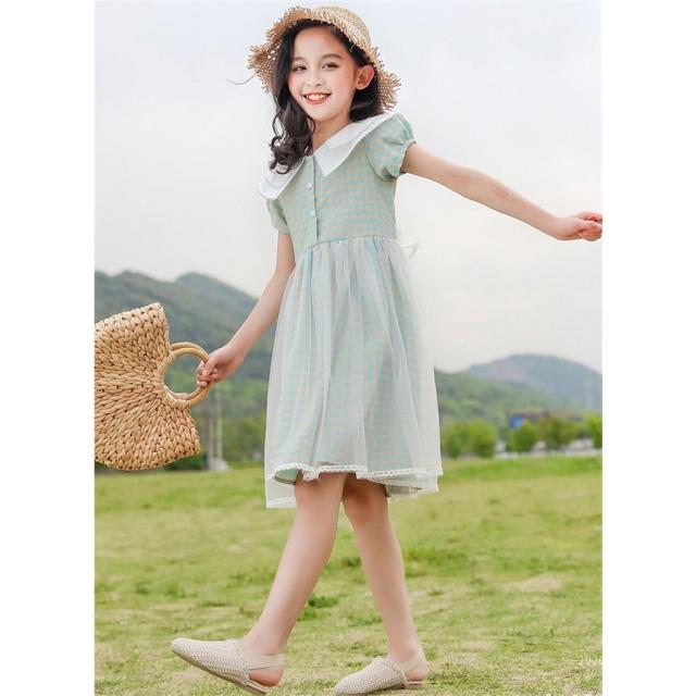 ワンピース キッズ 子供服 女の子 夏 キッズワンピース 半袖ワンピース 折り襟 チェック柄 夏服 チュニック 子供ドレス お姫様 おしゃれ カジュアル 可愛い 新品