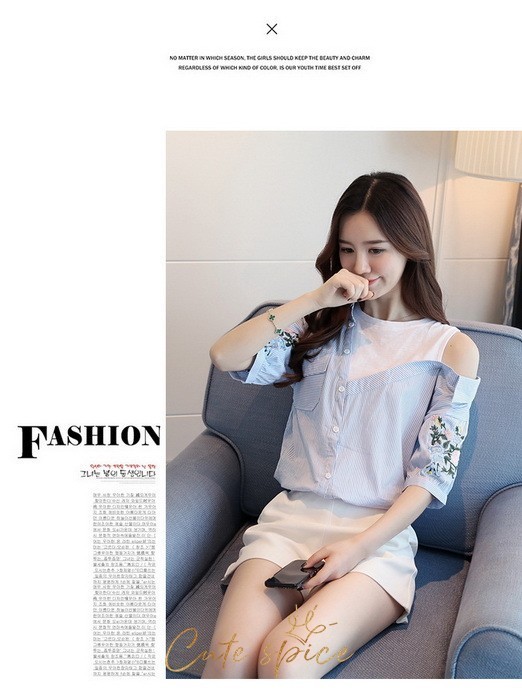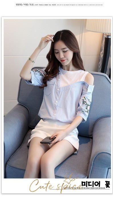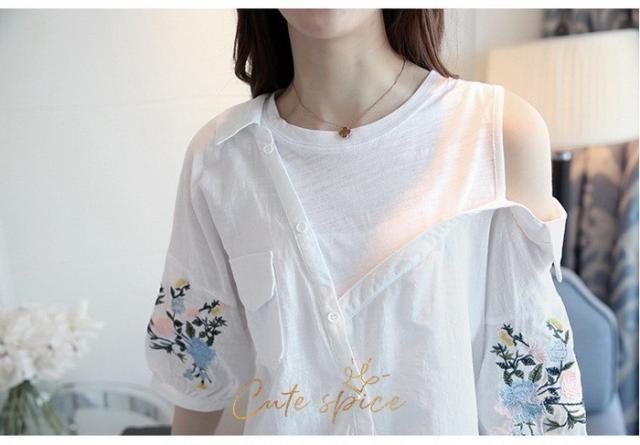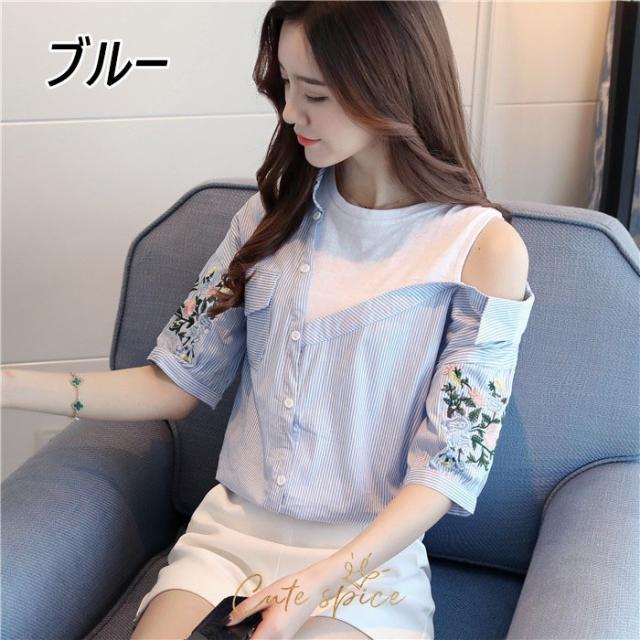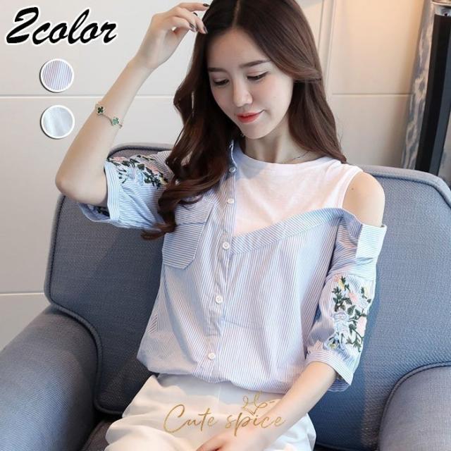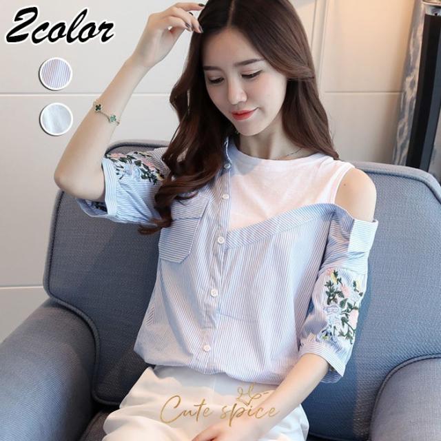 レディースブラウス40代きれいめ 夏春オシャレ着痩せ肩出 しシャツ白シャツ 五分袖トップス切り替え通勤OL大人