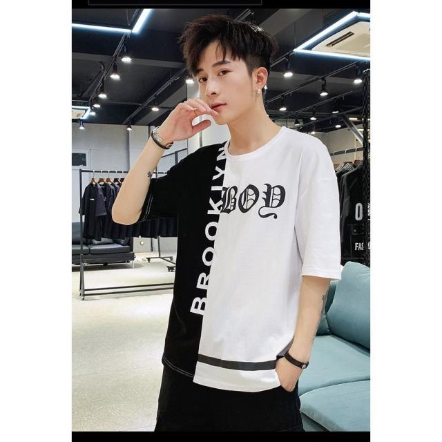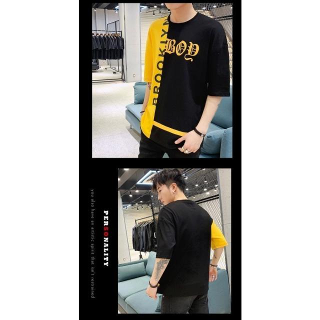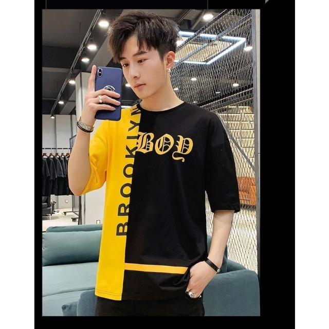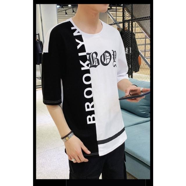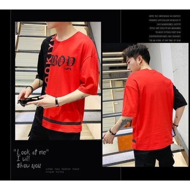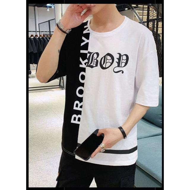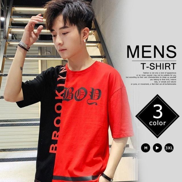 半袖Tシャツ メンズ ロングTシャツ プリントTシャツ クルーネックトップス ファッション 文字