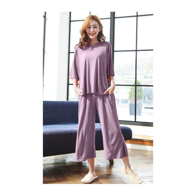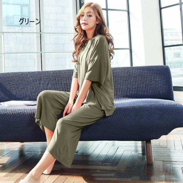 パジャマ ルームウェア レディース 春夏 半袖 パジャマ ルームウェア モーダル 七分丈ワイドパンツ上下セット 可愛いパジャマ 女性 部屋着 寝間き大きいサイズ