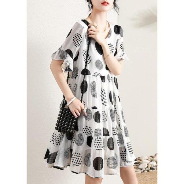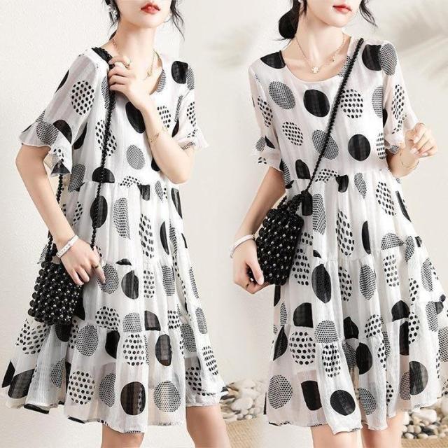 シフォンワンピース レディース 40代 キレイめ ドット柄 マキシ丈ワンピース 春夏 半袖ワンピース シフォン 上品 着痩せ