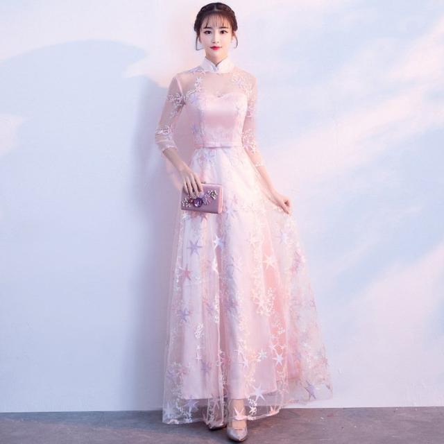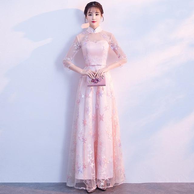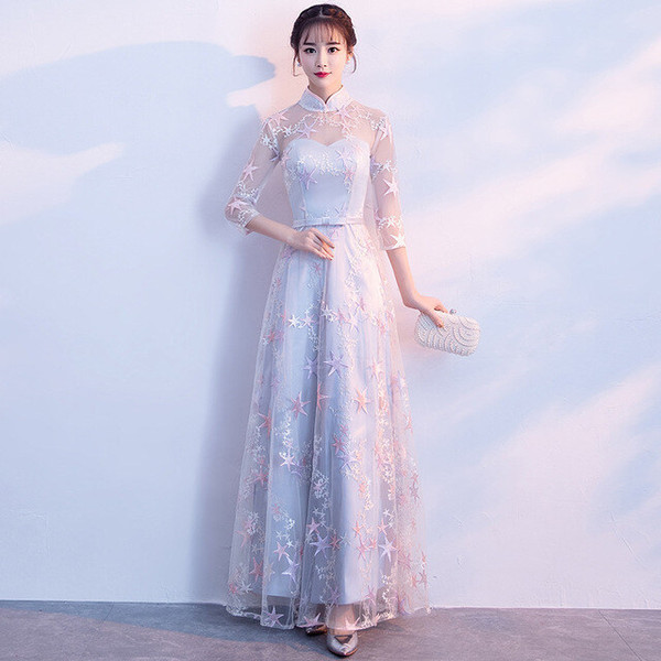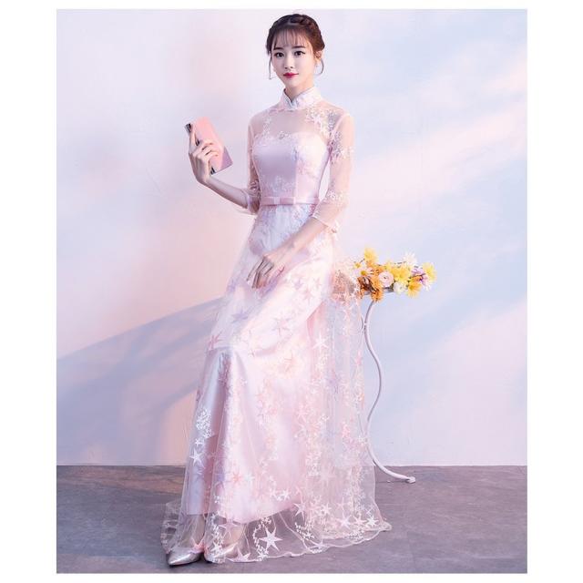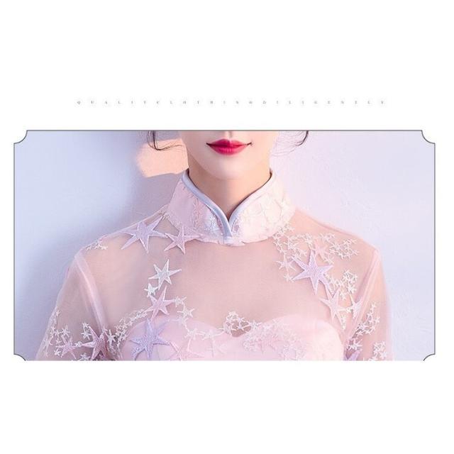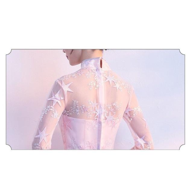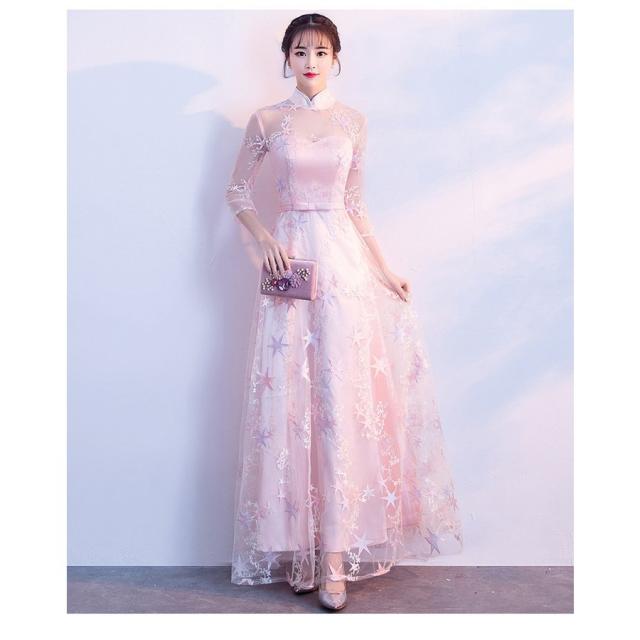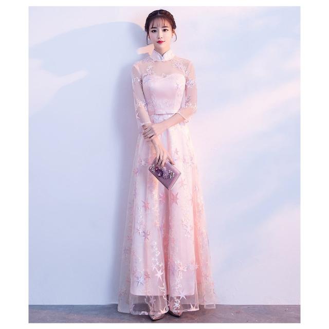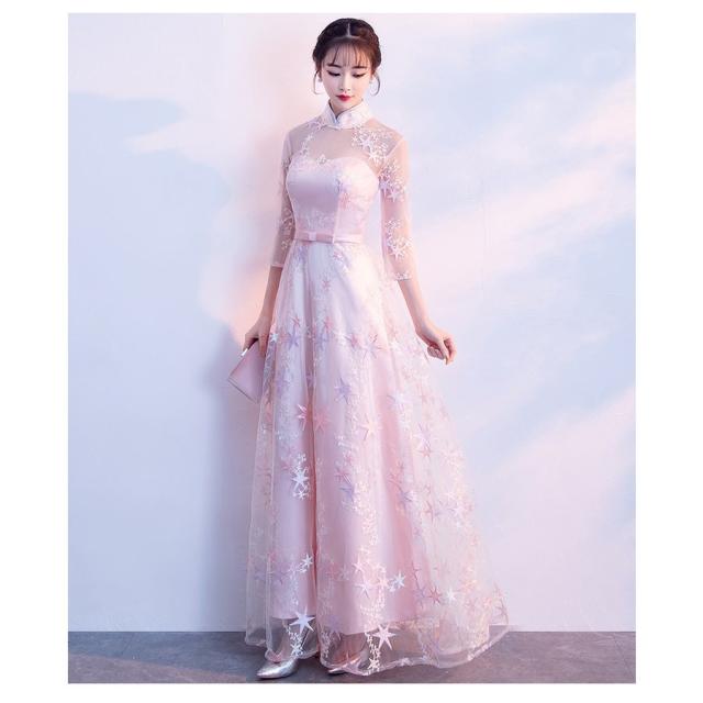 パーティードレス 安い 可愛い 結婚式 披露宴 花嫁 ウエディングドレス レース スタンドカラー 長袖