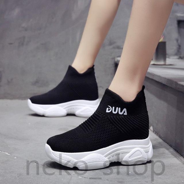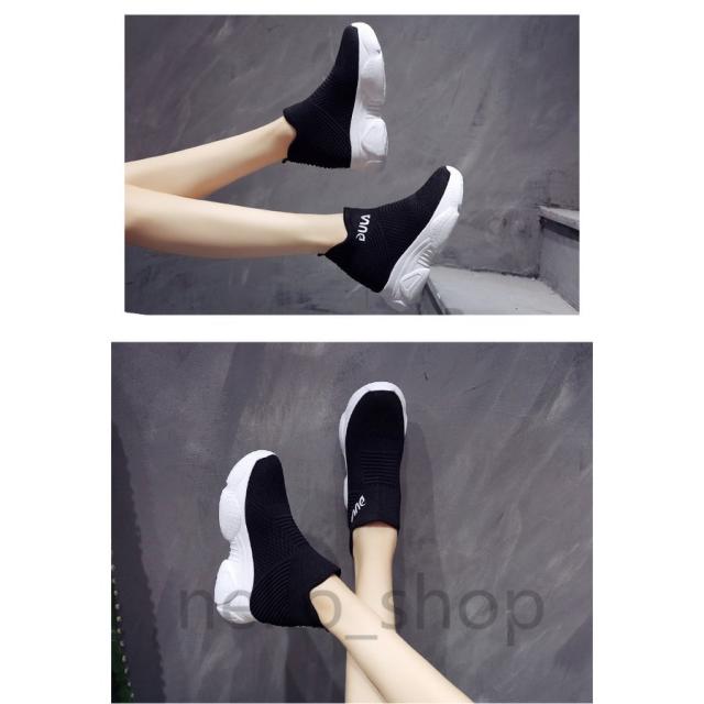 ソックススニーカー レディース 厚底 ダッドスニーカー ニット インヒール ハイカット ウォーキング 運動靴 カジュアル 痛くない 履きやすい シューズ 2color