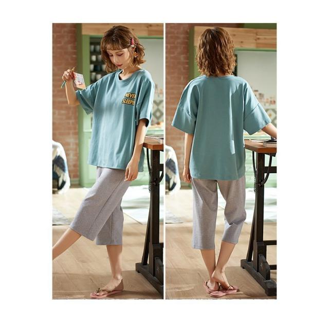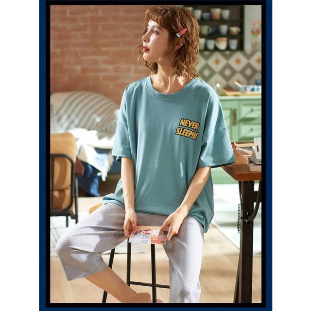 パジャマ ルームウェア レディース 春夏 半袖 パジャマ 綿 ルームウェア 大きいサイズ ロングパンツ 上下セット 可愛い パジャマ 女性 部屋着 寝間着 韓国風