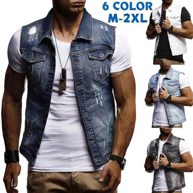 ベスト メンズ ジレメンズ デニム チョッキ デニムベスト メンズ ダメージ加工 カジュアル ファッション 個性 4color ポイント消化