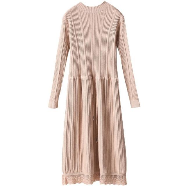 ニットワンピース レディース 40代 秋冬 きれいめ レース マキシワンピース 長袖 ニットワンピース Vネック aラインスカート 結婚式ドレス 通勤 セーター 着痩せ