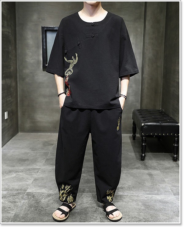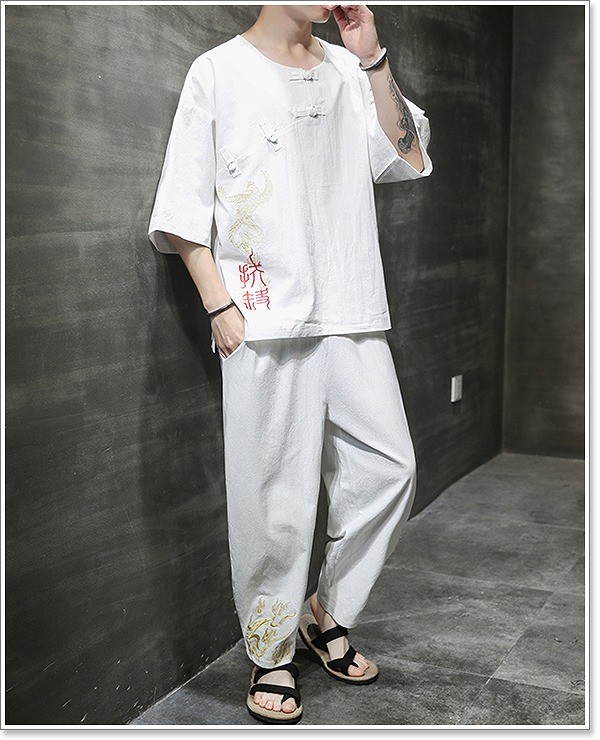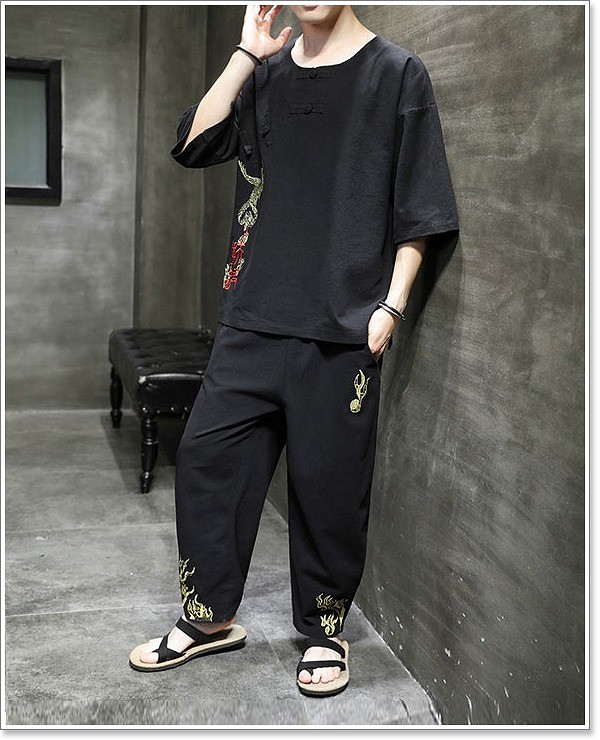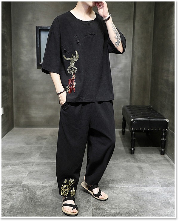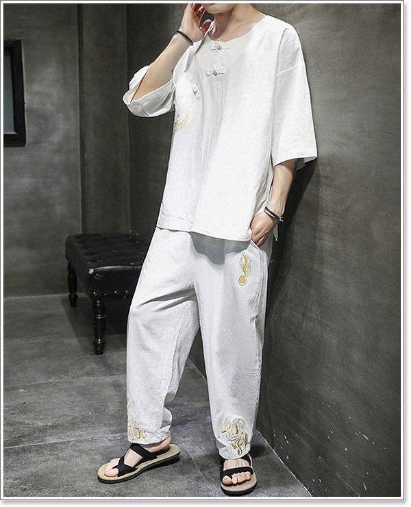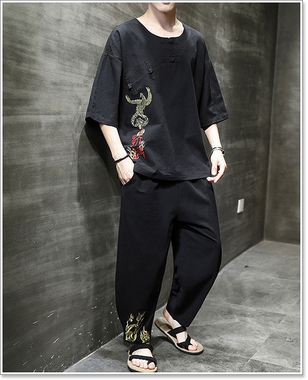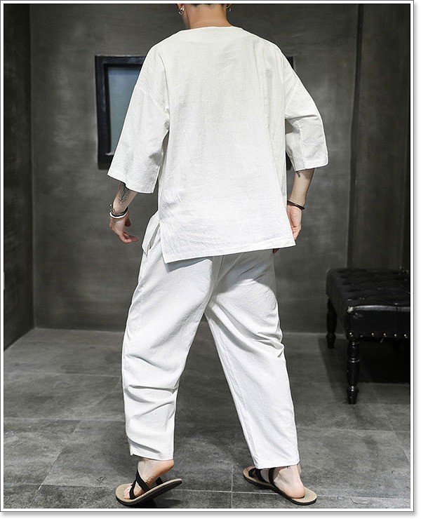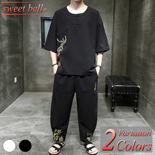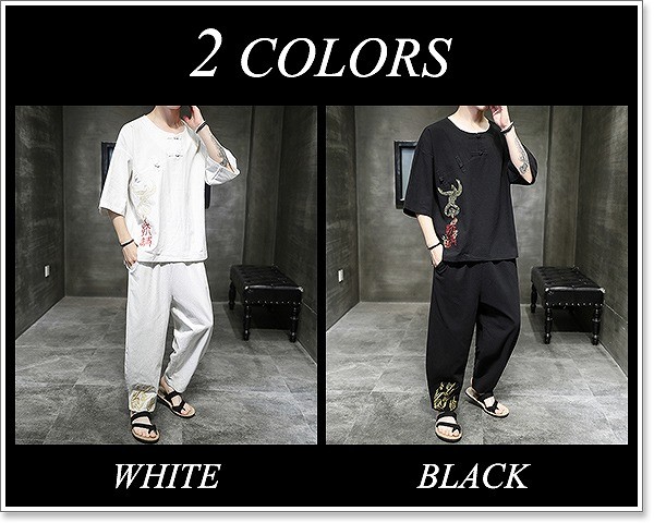 甚平 メンズ 半袖 作務衣 夏用 男性用 麻 浴衣 着物 部屋着 刺繍 夏祭り 花火大会 おしゃれ しじら織り 大きいサイズ セットアップ