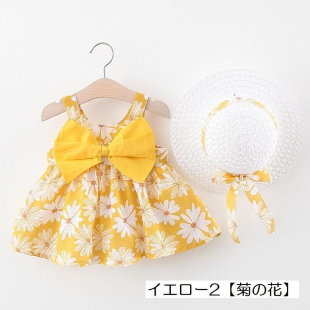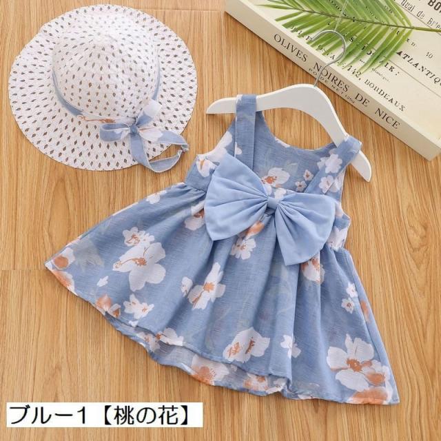 ワンピース 帽子付き 子供服 ベビー キッズ 赤ちゃん 女の子 カジュアルドレス 袖なし ノースリーブ 花柄 フラワープリント リボン ギャザー フレ