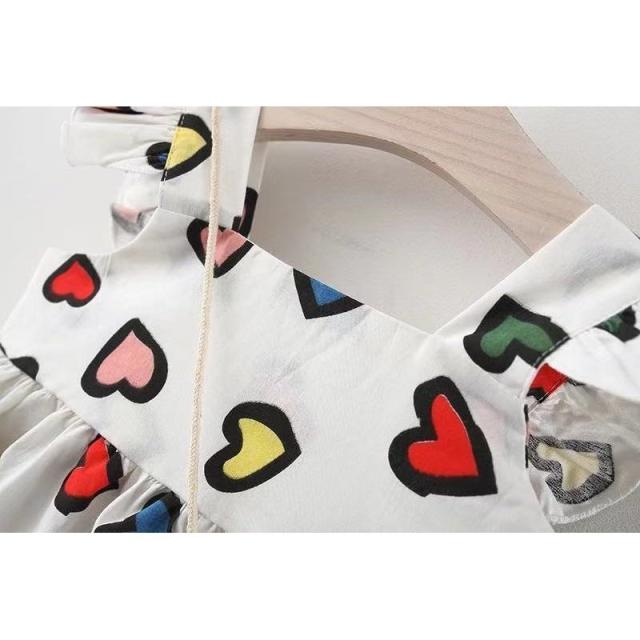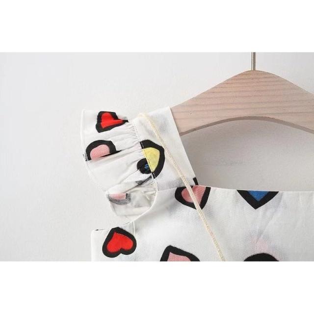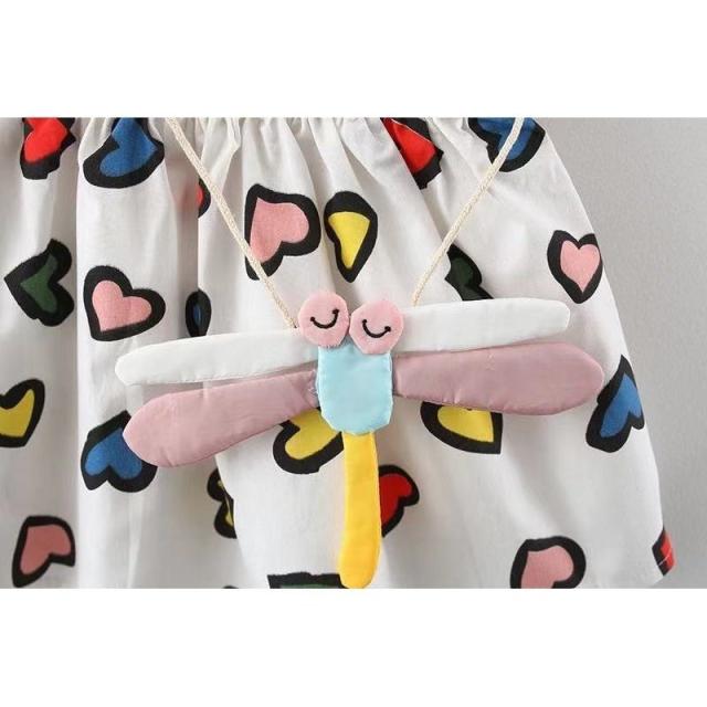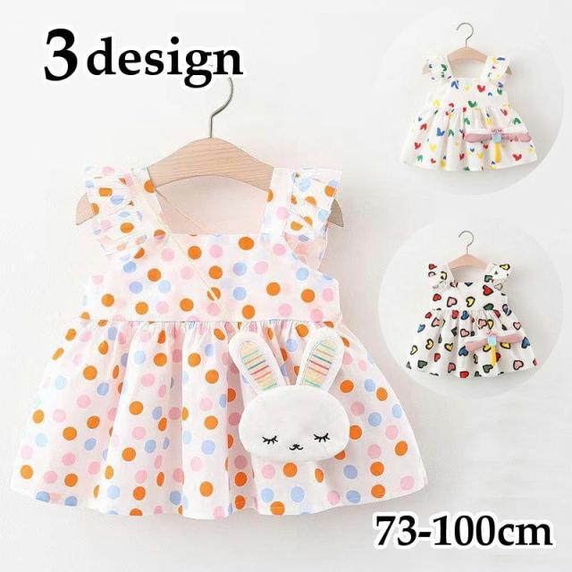 ワンピース ポシェット付き 子供服 ベビー キッズ 赤ちゃん 女の子 カジュアルドレス フリル袖 ギャザー フレア ドット柄 水玉 ハート プリント