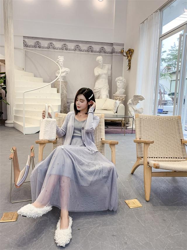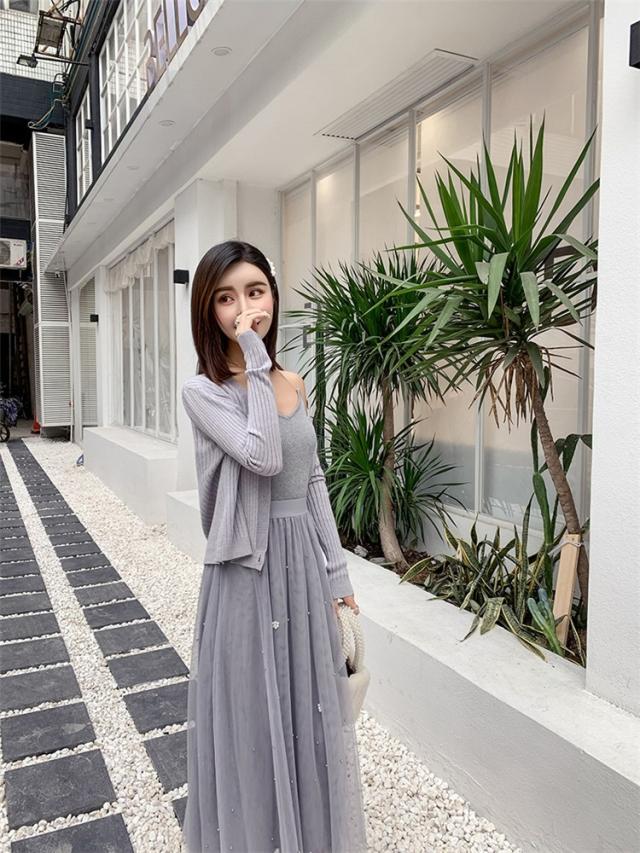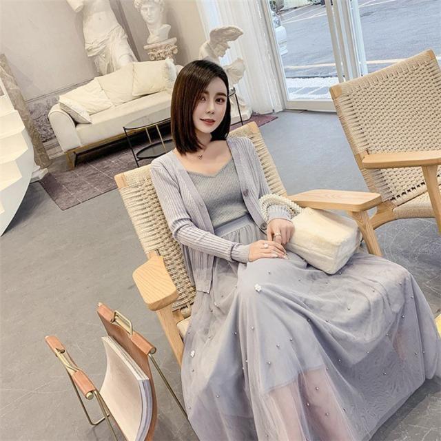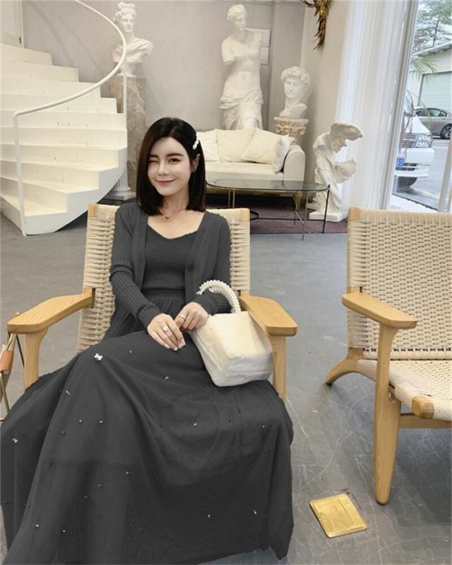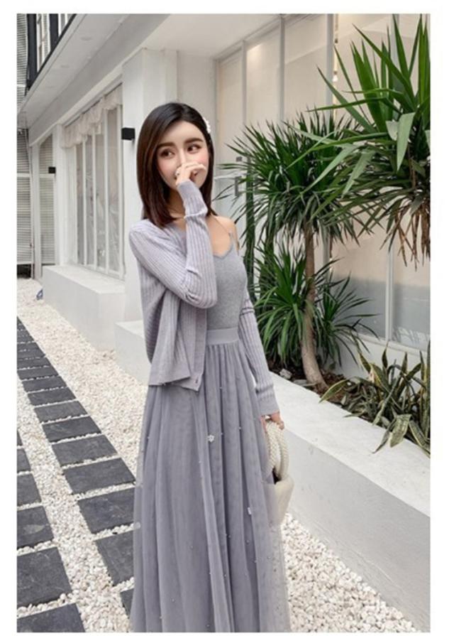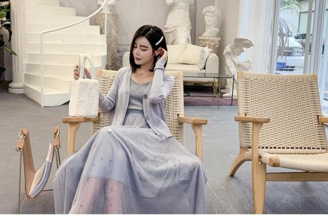 3点セット レディース ニットワンピース ドレス カーディガン メリヤス チュールスカート セーター 長袖 ルロング丈 秋冬 ワンピース 韓国風 着痩せ 通勤