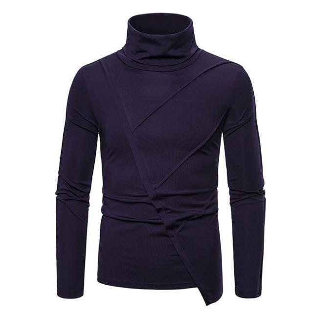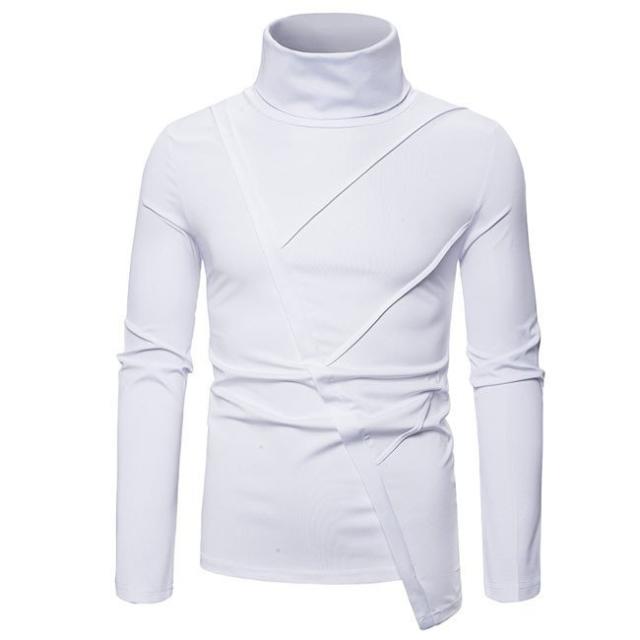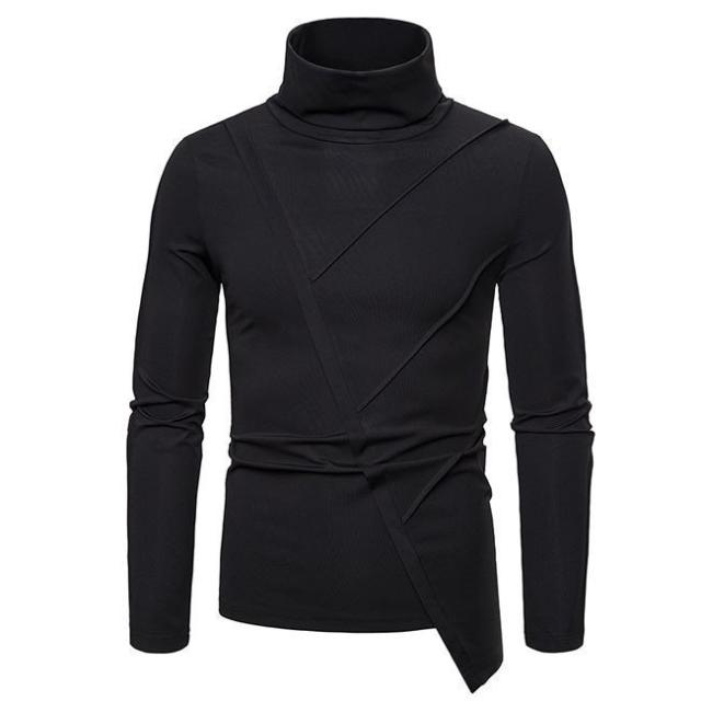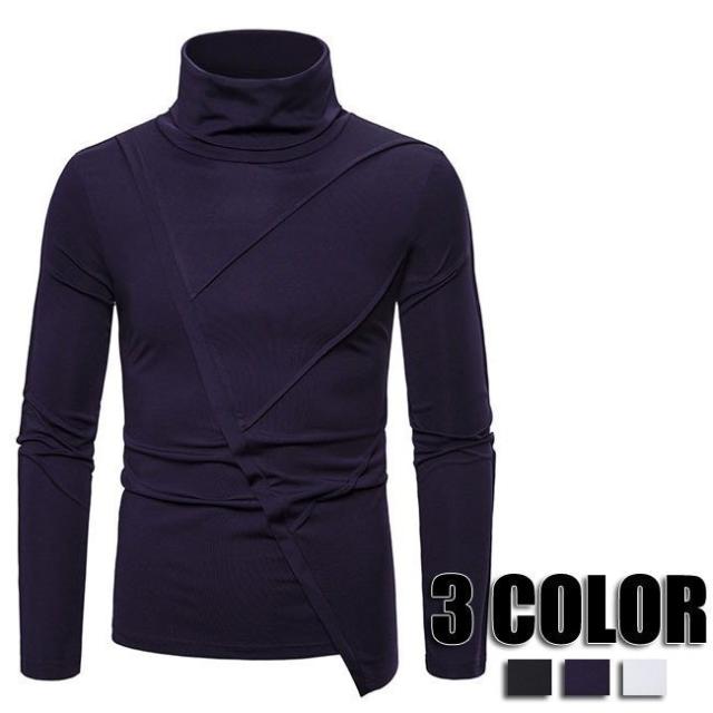 Tシャツ メンズ カットソー 不規則 長袖 トップス タートルネック 秋冬 カジュアルTシャツ 無地 男性用 ブラック Tシャツ メンズファッション 3色