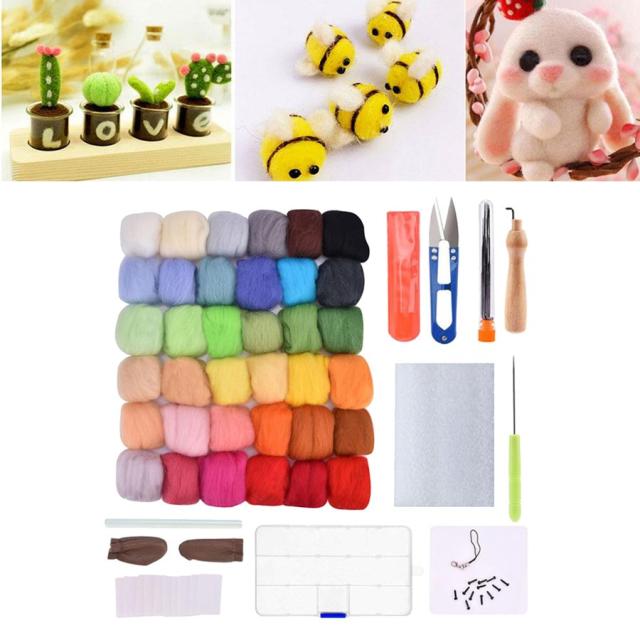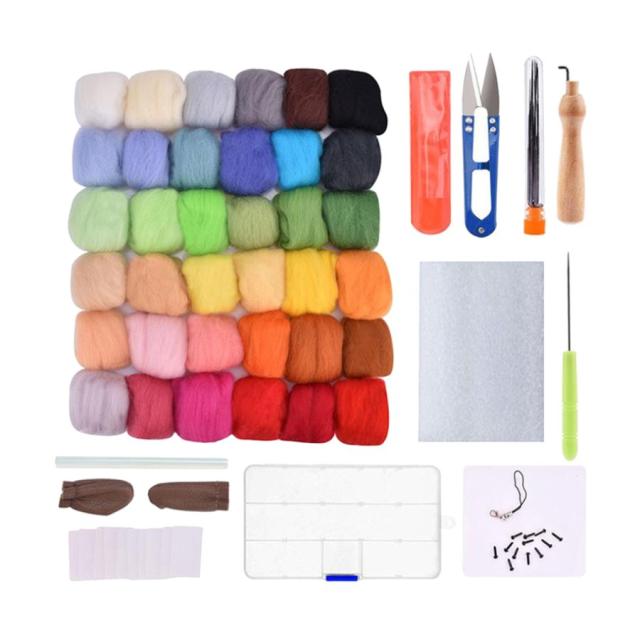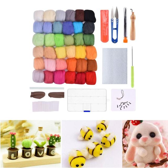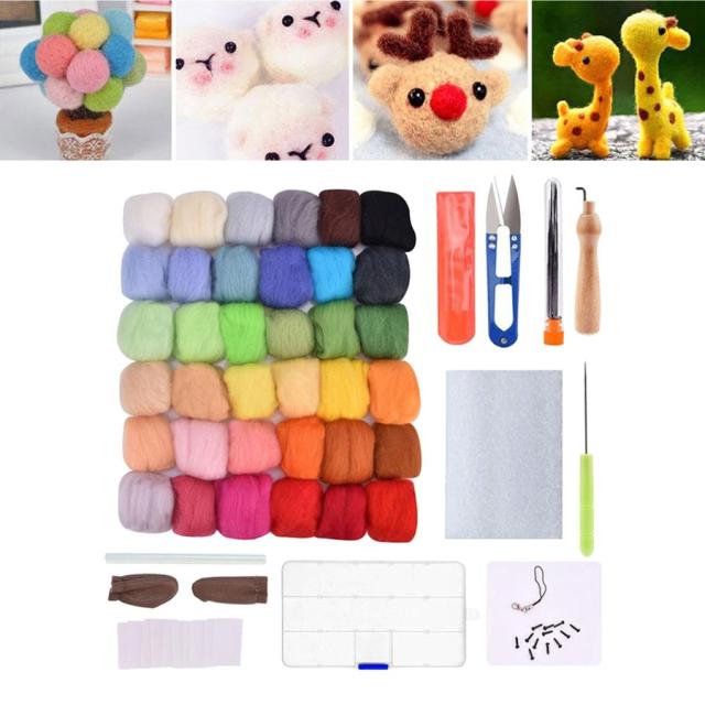 針フェルトキット.36/50 色 ウールウールロービング. 基本 的なツール.針 . 指穂軸 . はさみ.ストラップためスターターdiyフェルトおもちゃ 人形