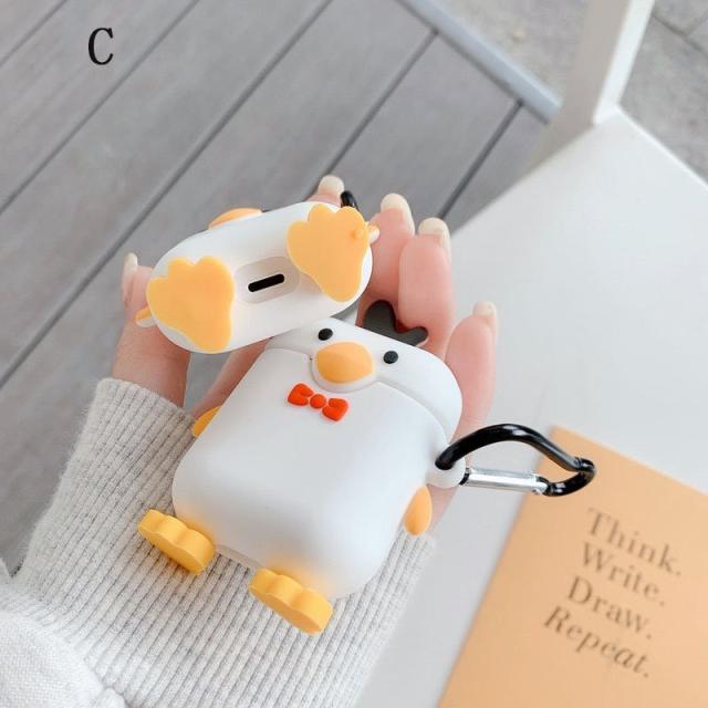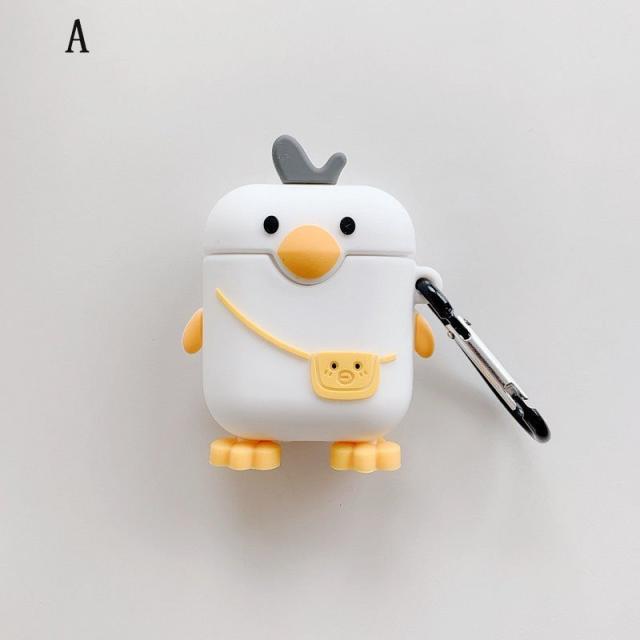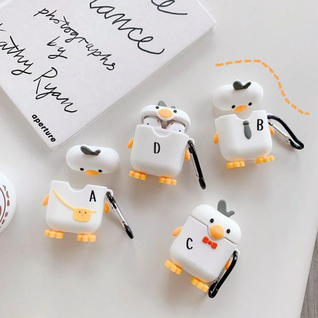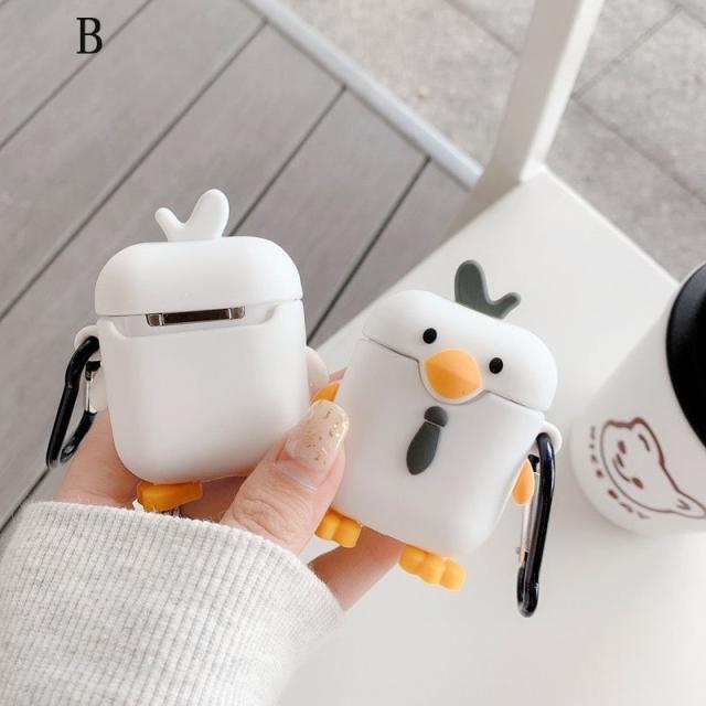 可愛いシロガモ スタイル ー AirPods1/2イヤホンカバー衝撃吸収 落下防止 可愛いキャラクター イヤホンカバー ワイヤレス充電 対応 全面保護