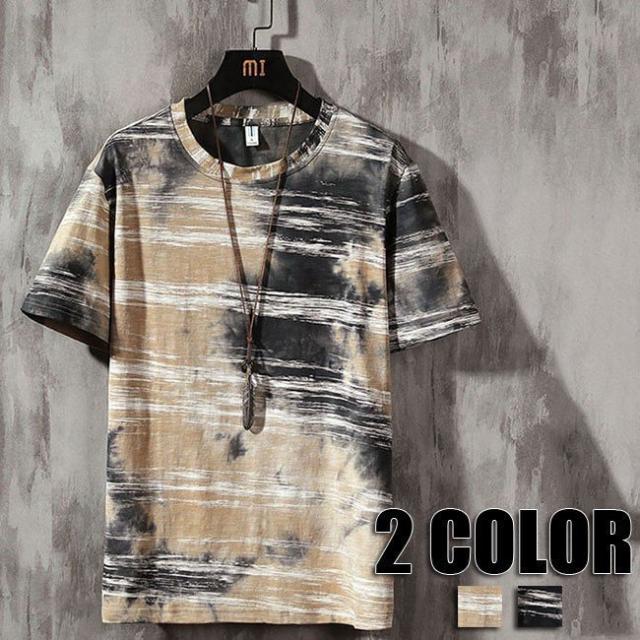 半袖Tシャツ メンズ 総柄 トップス 丸首 大きいサイズ Tシャツ メンズ 総柄 新品 新作 メンズ用 2色