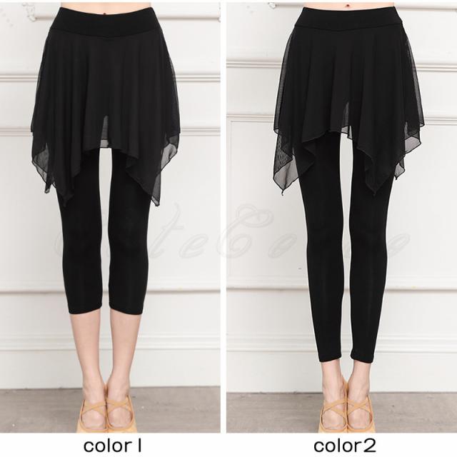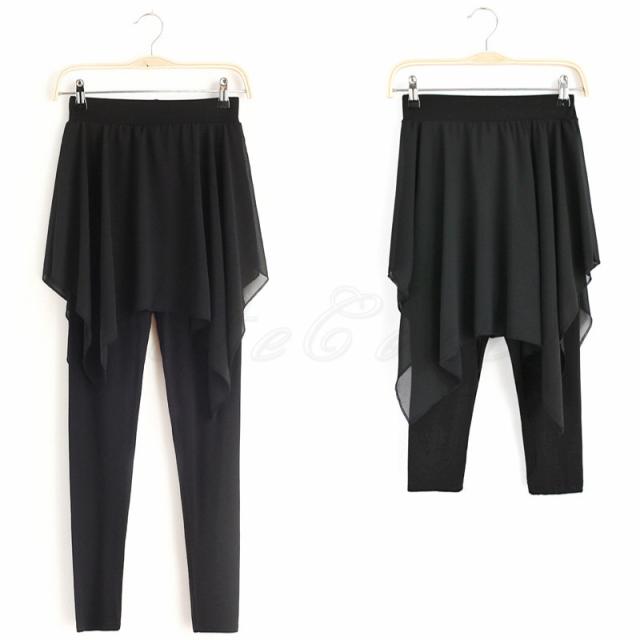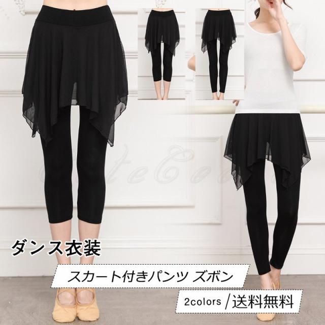 21年春新作 ダンス衣装 レディース スカート付きパンツ ズボン スカパン レギンス スポーツウェア 無地 ボトムス カジュアル 美脚 きれいめ おしゃれ 送料無料