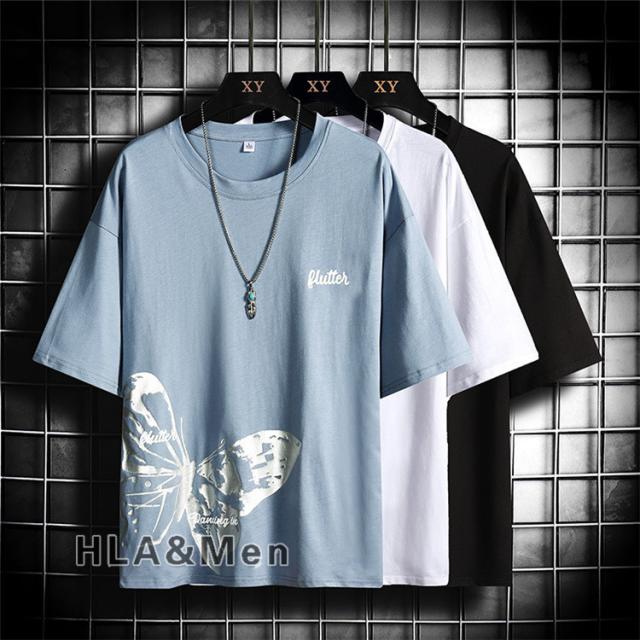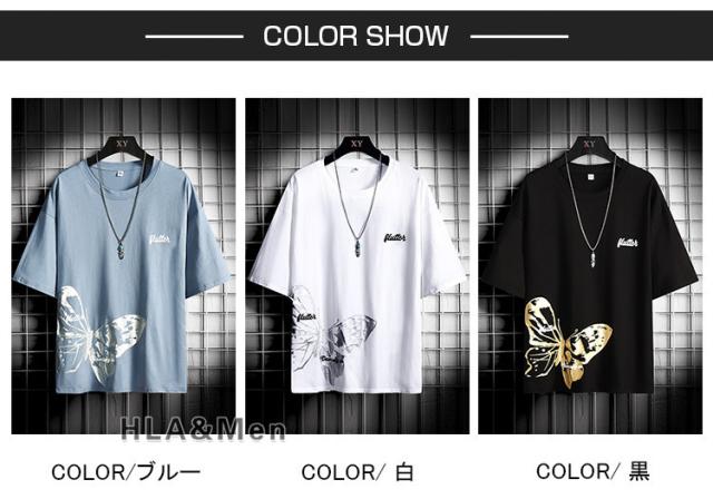 Tシャツ 半袖 メンズ カットソー 丸首Tシャツ 蝶柄 トップス カジュアルTシャツ 夏物 おしゃれ