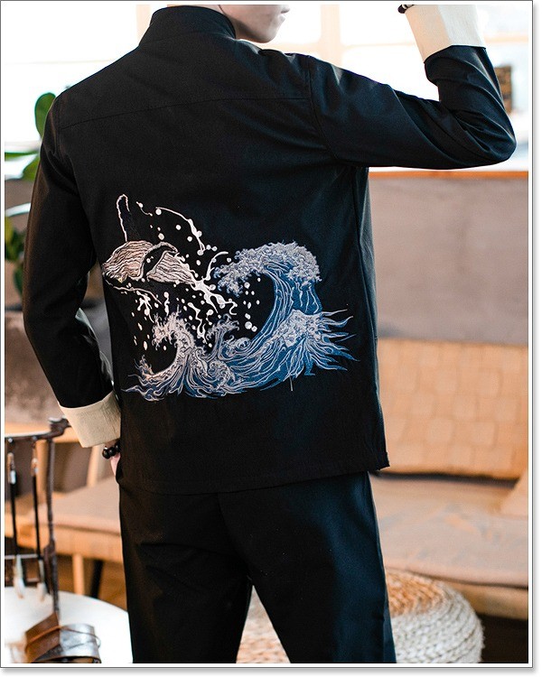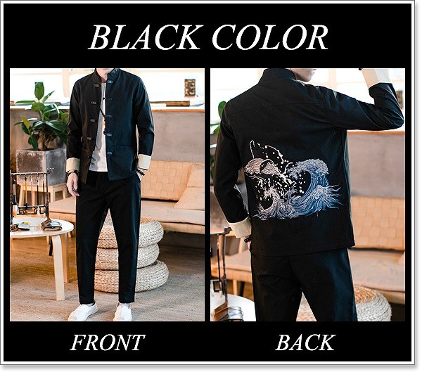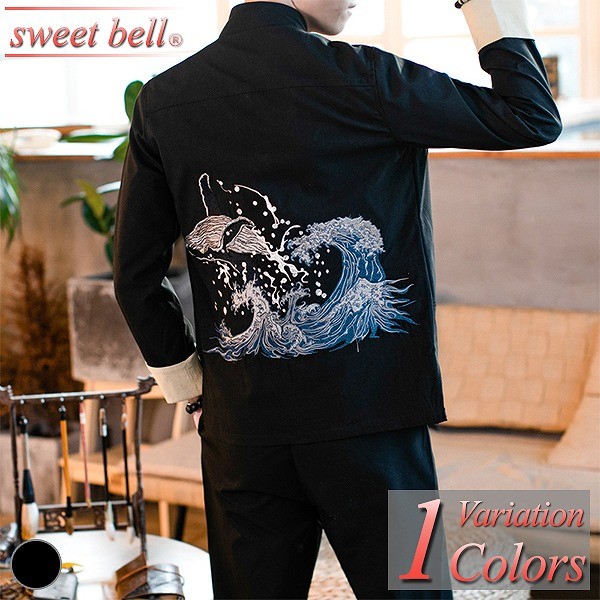甚平 メンズ 長袖 作務衣 夏用 男性用 麻 浴衣 着物 刺繍 部屋着 夏祭り 花火大会 しじら織り おしゃれ 大きいサイズ セットアップ