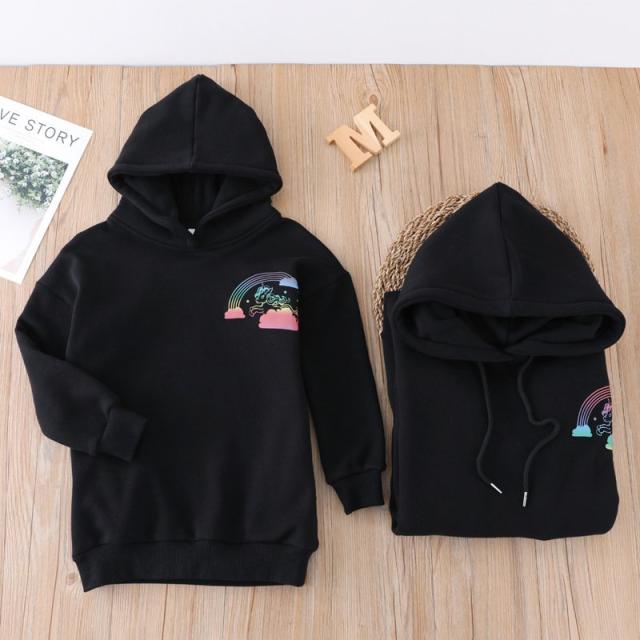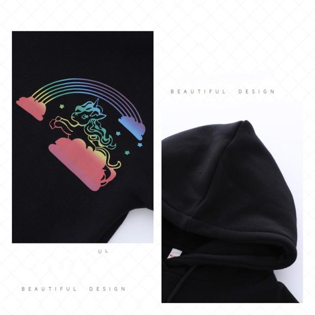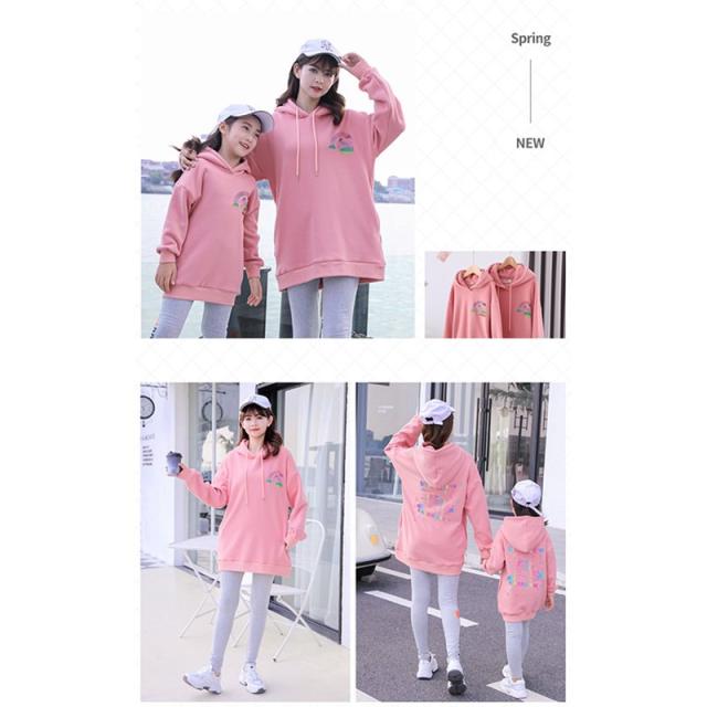 親子ペアルック ベビー 親子コーデ 帽子 付き 裹毛ありパーカー 長袖 親子コーデ 家族お揃い ペアルック 親子ペア ママ/キッズのお揃い ユニコーンの模様