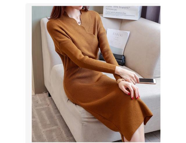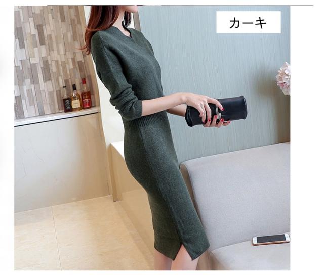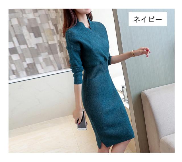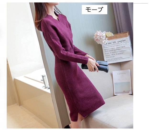 ワンピース ニット ワンピース 秋 長袖 プルオーバーセーター ワンピース 着やせ 簡単に 無地 レディース ワンピース 今コ新着 婦人服 2017秋冬新作