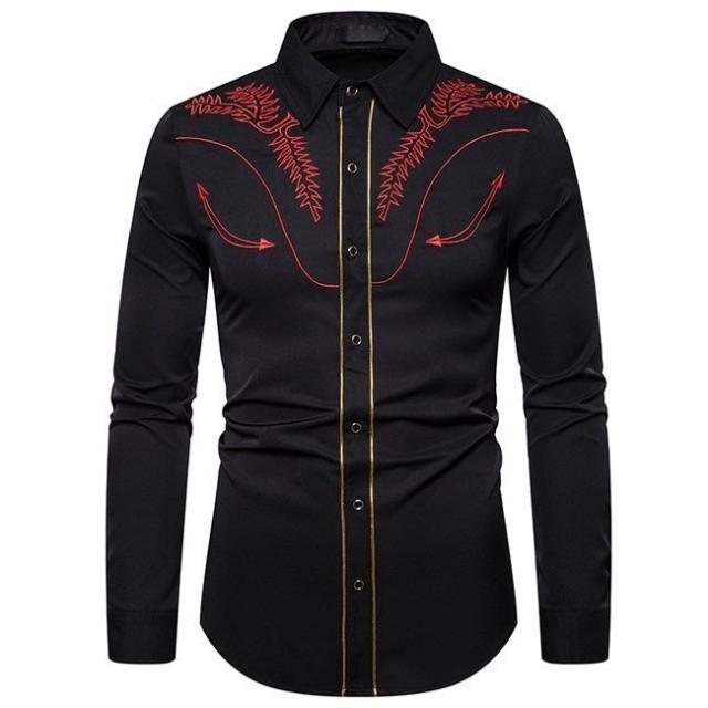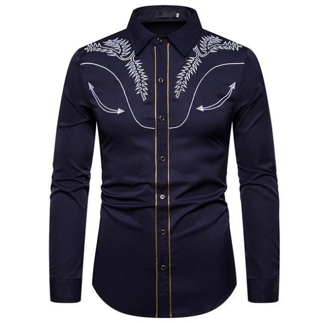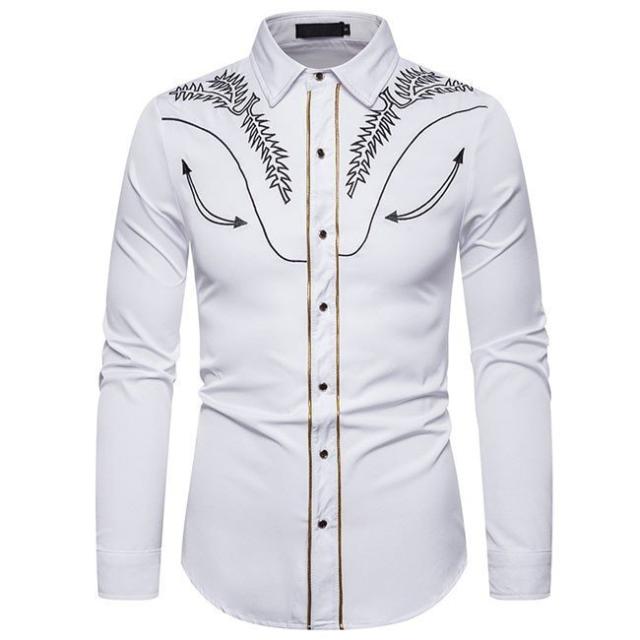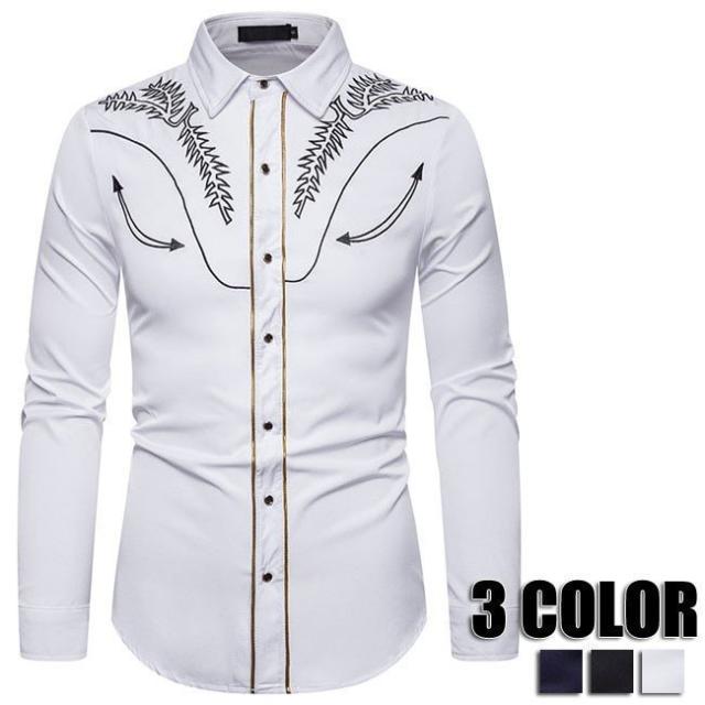 トップス シャツ 長袖 カジュアルシャツ メンズ 秋冬 刺繍 カジュアルシャツ メンズ ホワイト ネイビー ブラック 長袖シャツ オシャレ 3色