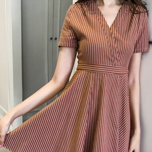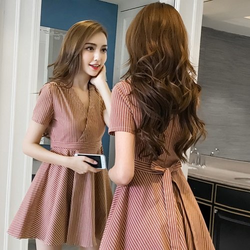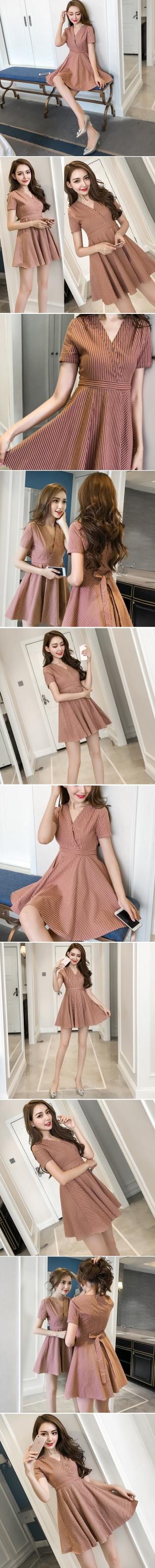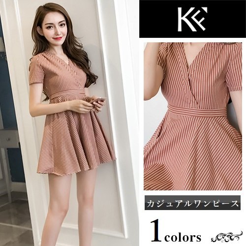ワンピース レディース 40代 きれいめ 50代 30代 上品 ドレス ストライプ Vネック リボン