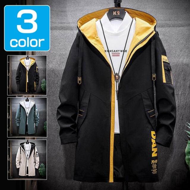 ジャケット メンズ ロング丈 マウンテンパーカー アウター ロングコート ウィンドブレーカー マウンパ シンプル 秋 カジュアル 通勤 通学