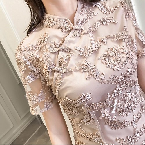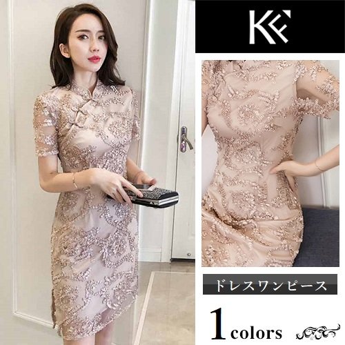 ワンピース レディース 40代 きれいめ 50代 30代 上品 ドレス チャイナドレス レース 刺繍 ミニ