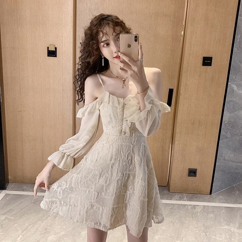 ワンピース レディース 40代 きれいめ 50代 30代 上品 ドレス レース 刺繍 オフショルダー フリル
