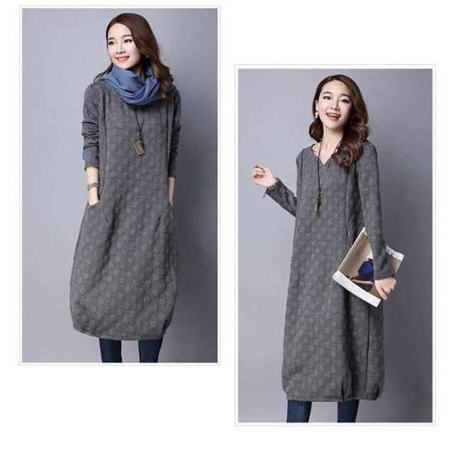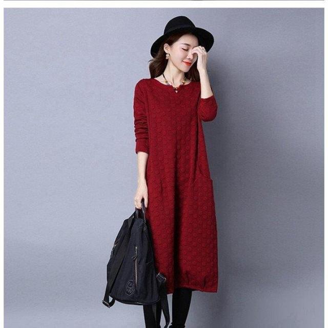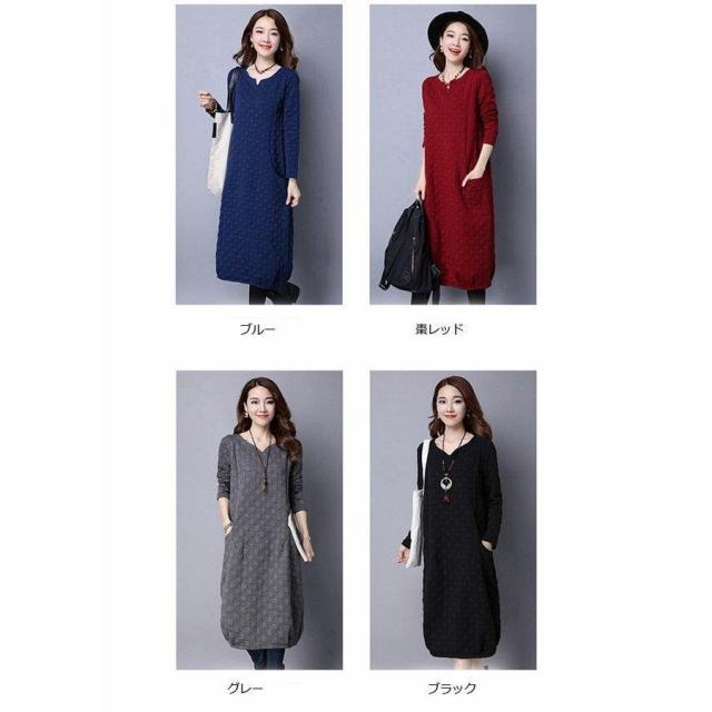 ワンピース レディース リネンワンピース 花柄 膝丈ワンピース 長袖 森ガール 大きいサイズ キルティングワンピース ロングワンピース 2018秋冬新作