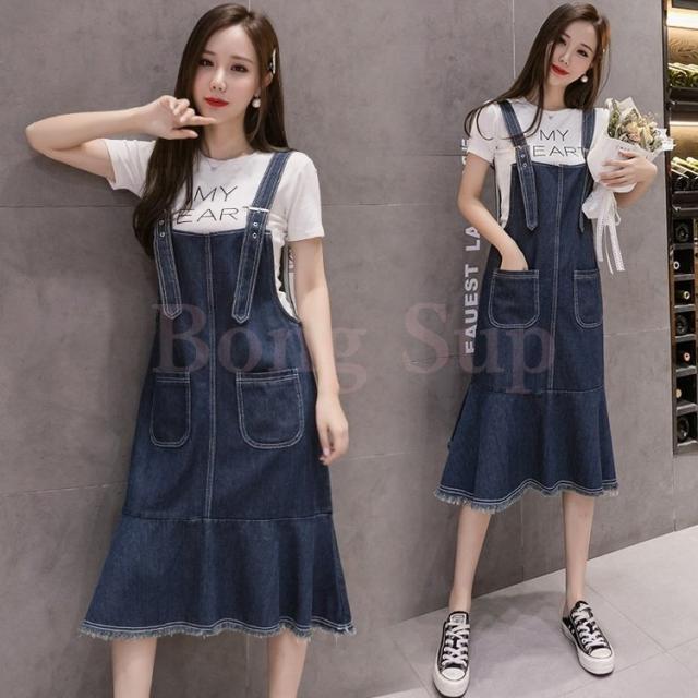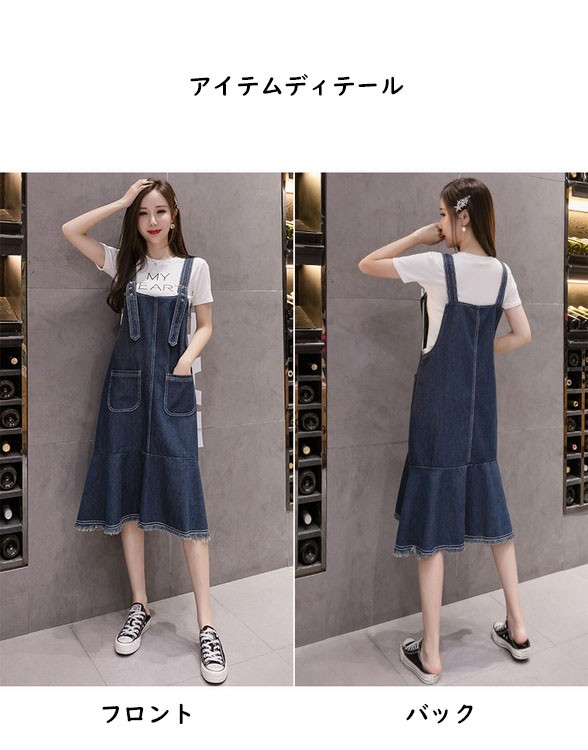 デニム サロペットスカート レディース ジャンパースカート デニム 30代 40代 50代 デニムワンピース オールインワン デニム ロング丈 体型カバー 大きいサイズ