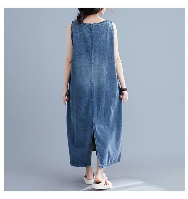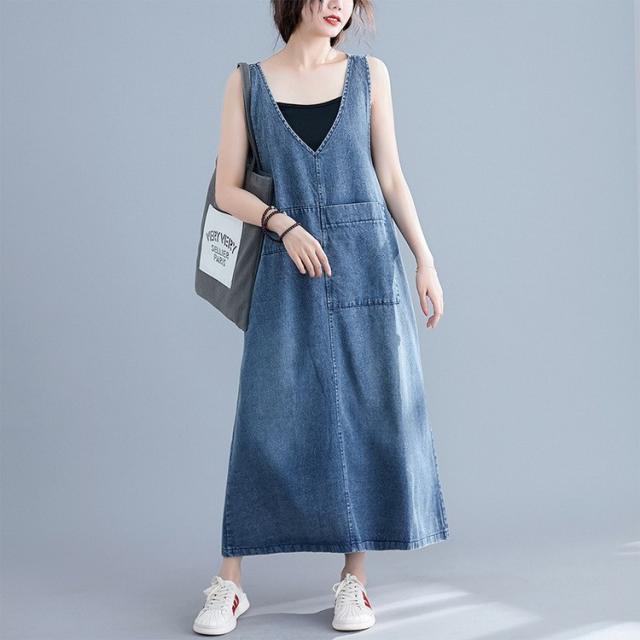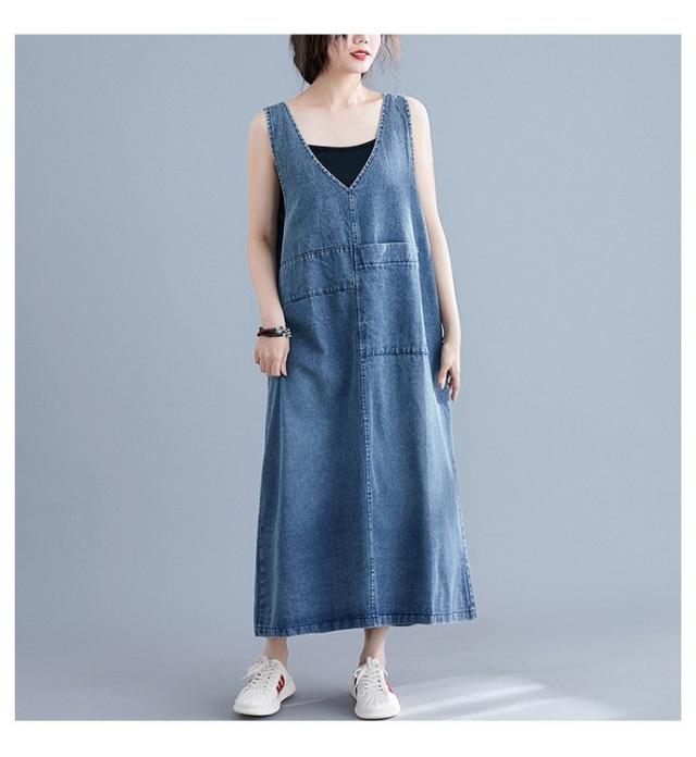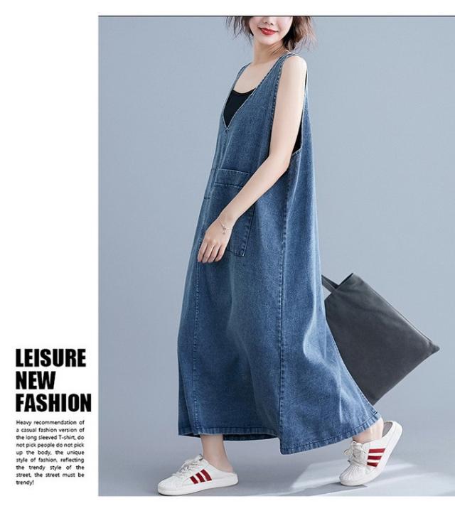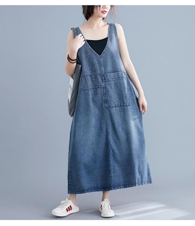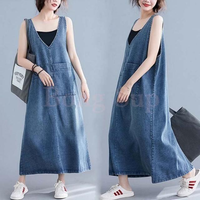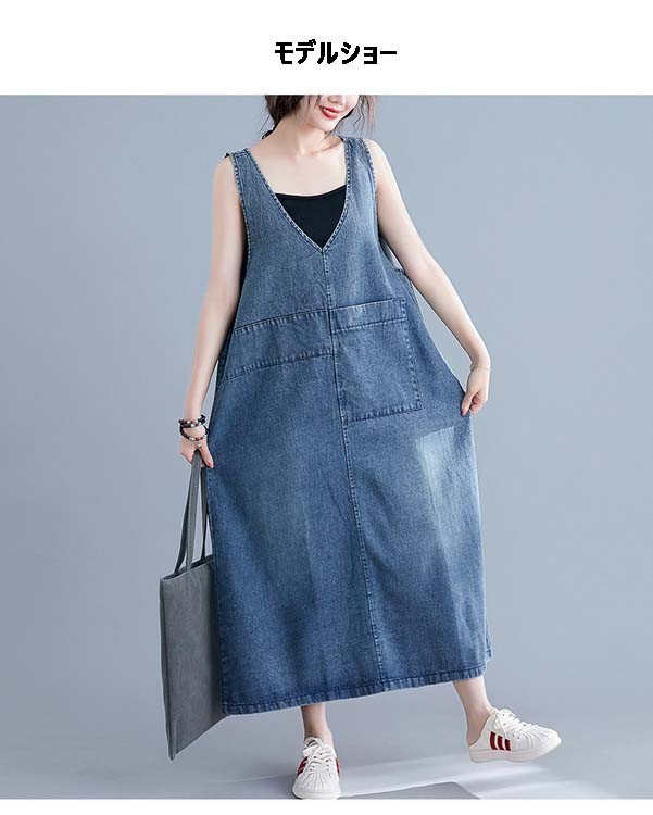 デニム サロペットスカート レディース マキシ丈 ジャンパースカート デニム 40代 50代 60代 デニムワンピース オールインワン デニム ロング丈 体型カバー