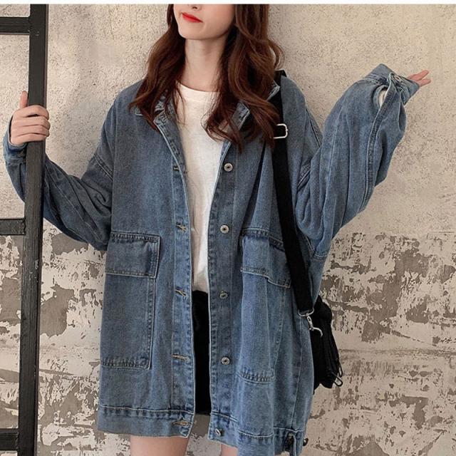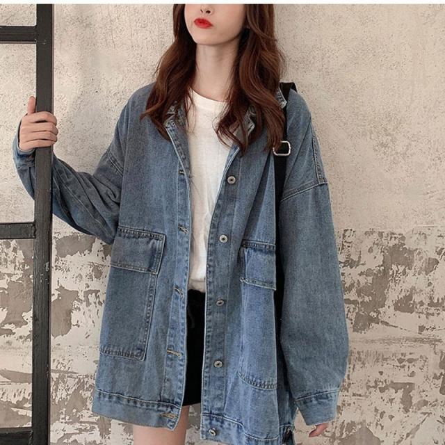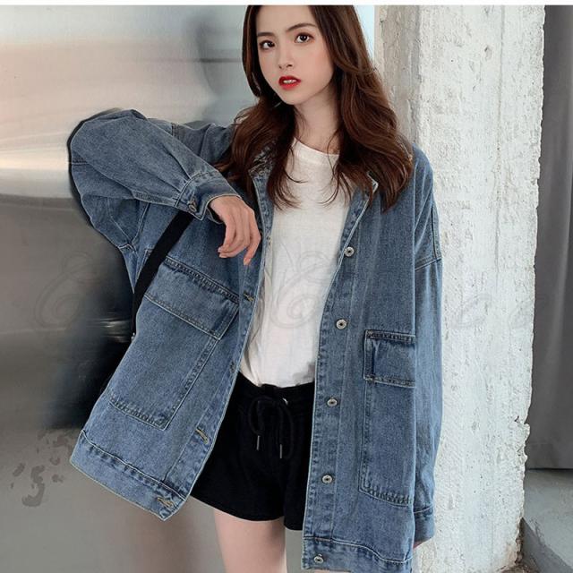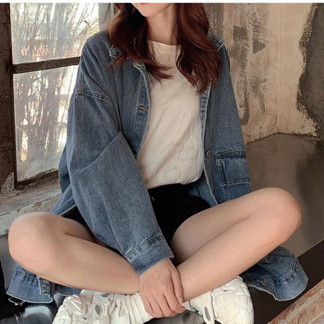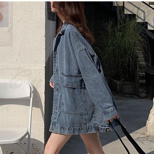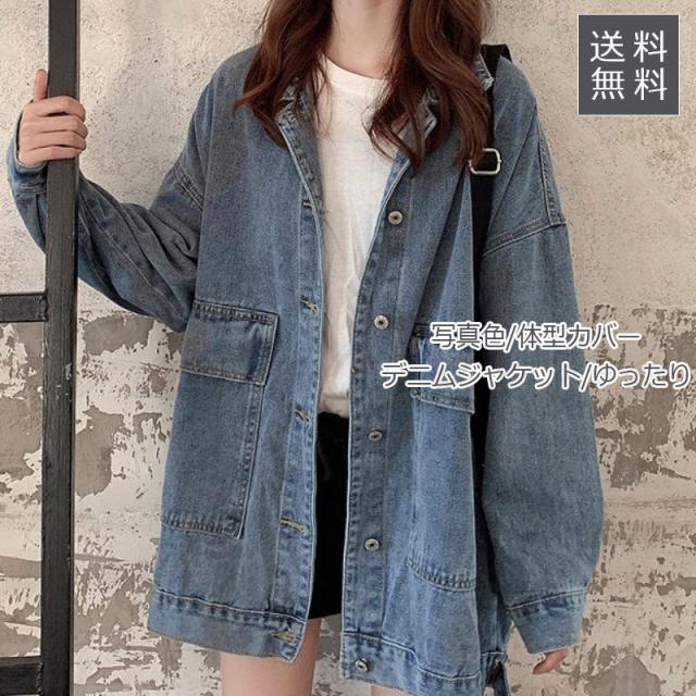21年春新作 デニムジャケット レディース アウター 無地 折り襟 前開き トップス カジュアル ポケット付き 体型カバー 春物 きれいめ おしゃれ 送料無料