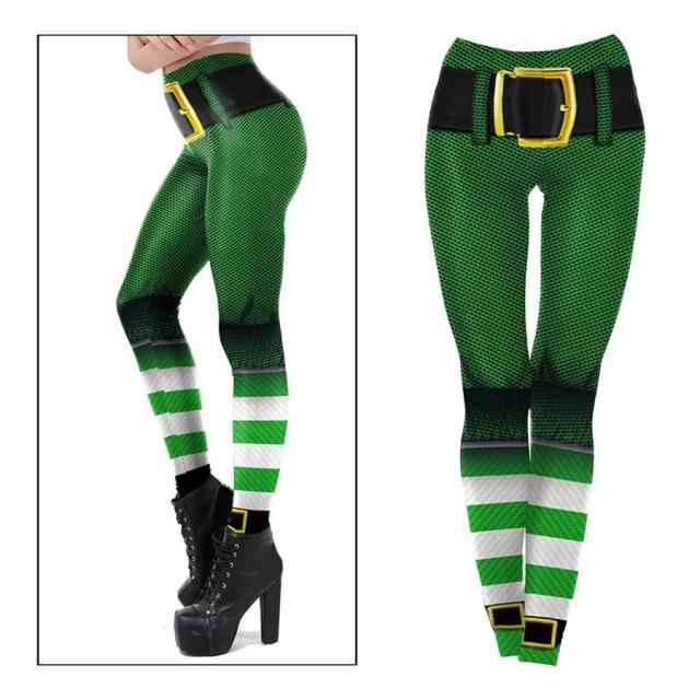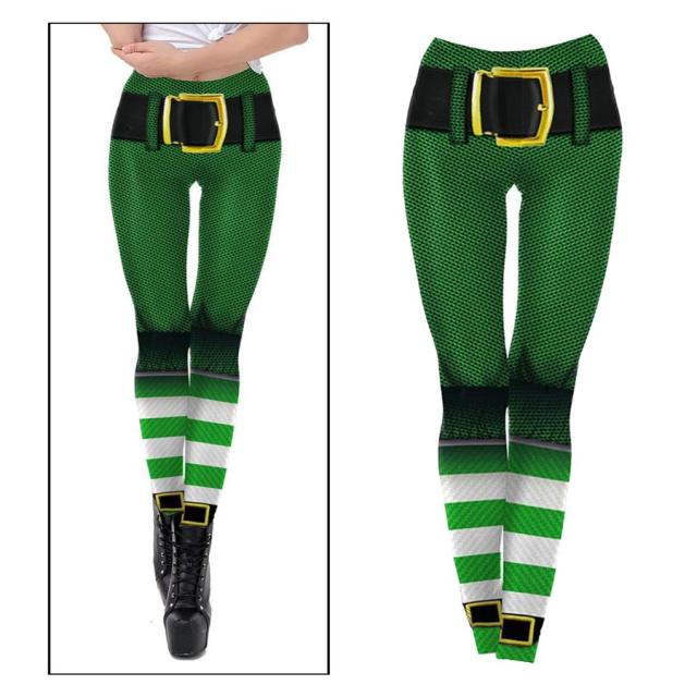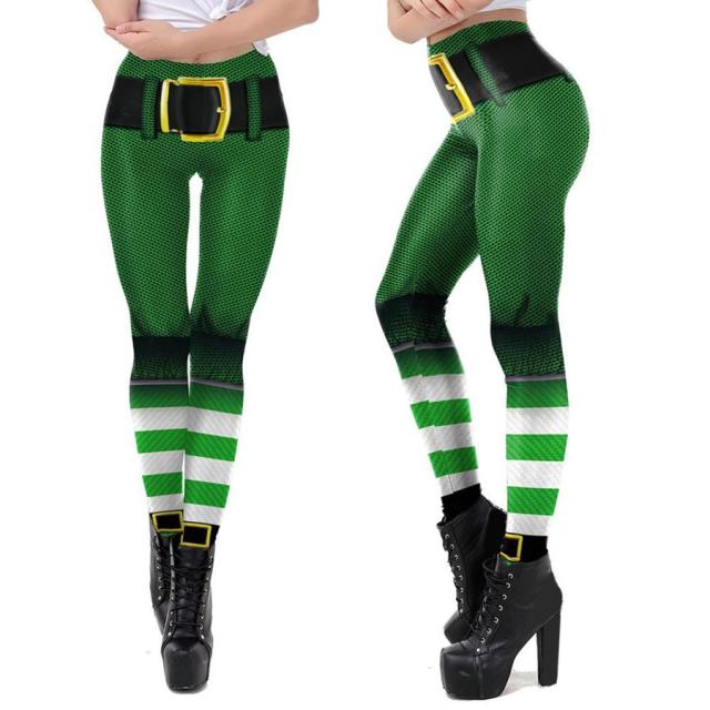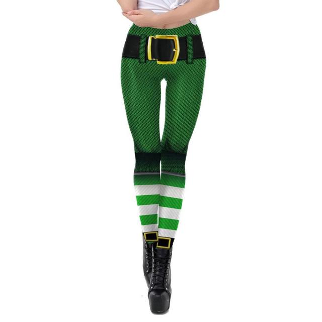 伸縮性 のあるソフトな 女性 のレギンスシャムロックプリントコンプレッションパンツメッシュ M